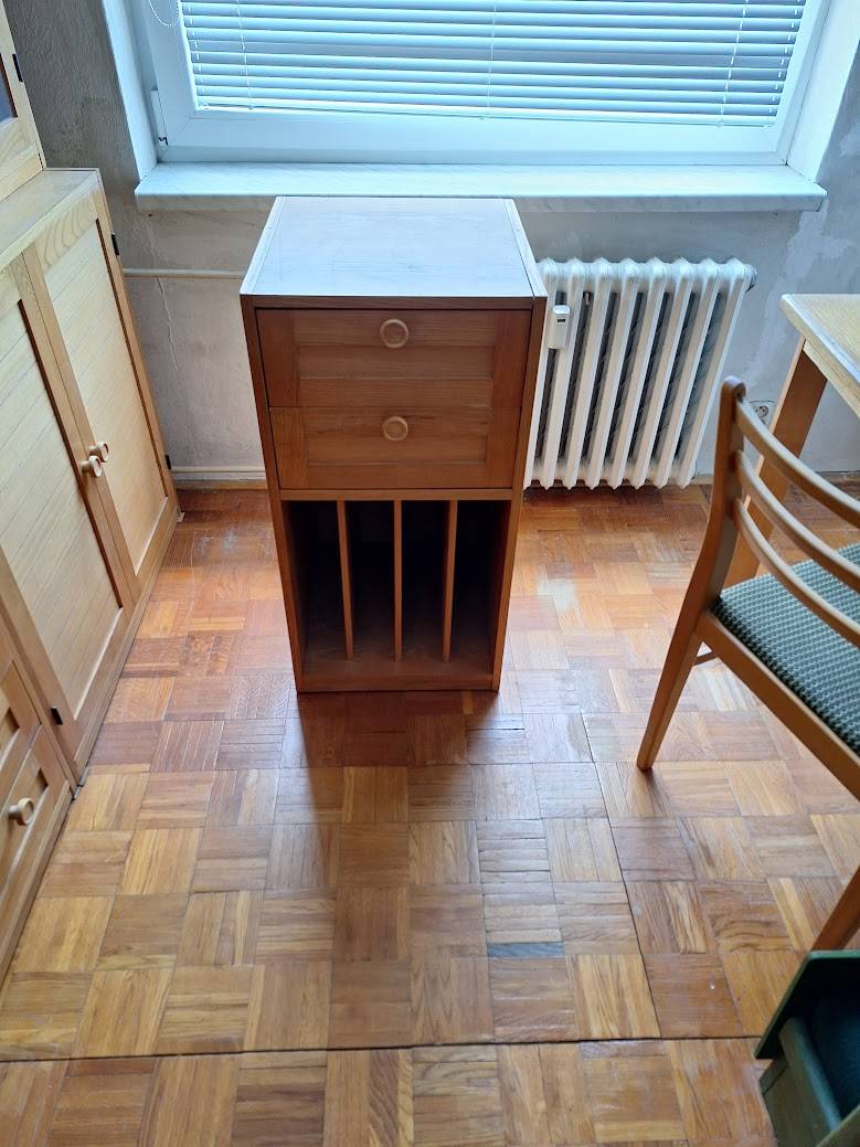 Daruji za odvoz malou komodu ze světlého dřeva s dvěma šuplíčky a volným spodním prostorem (původně na desky) - výška 84 xm, šířka 45. Osobní odvoz Zlín - Jižní Svahy. Nabízíme také další nábytek ze stejného dřeva.