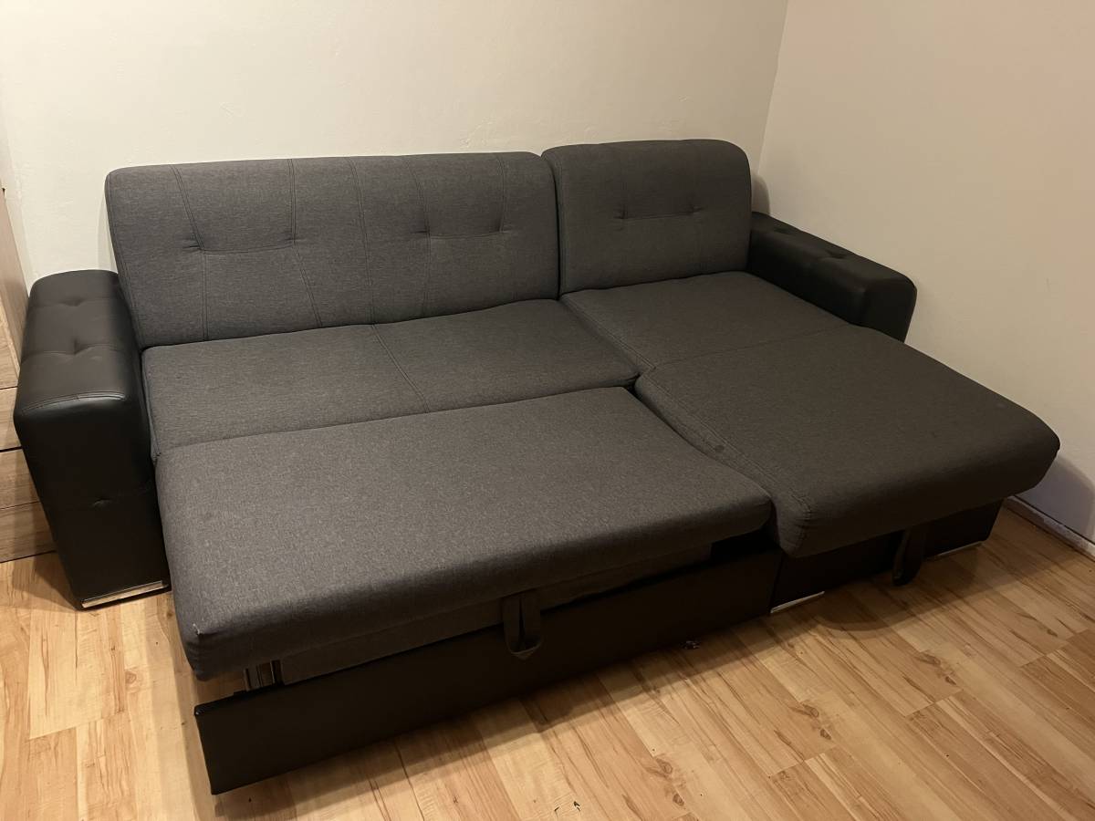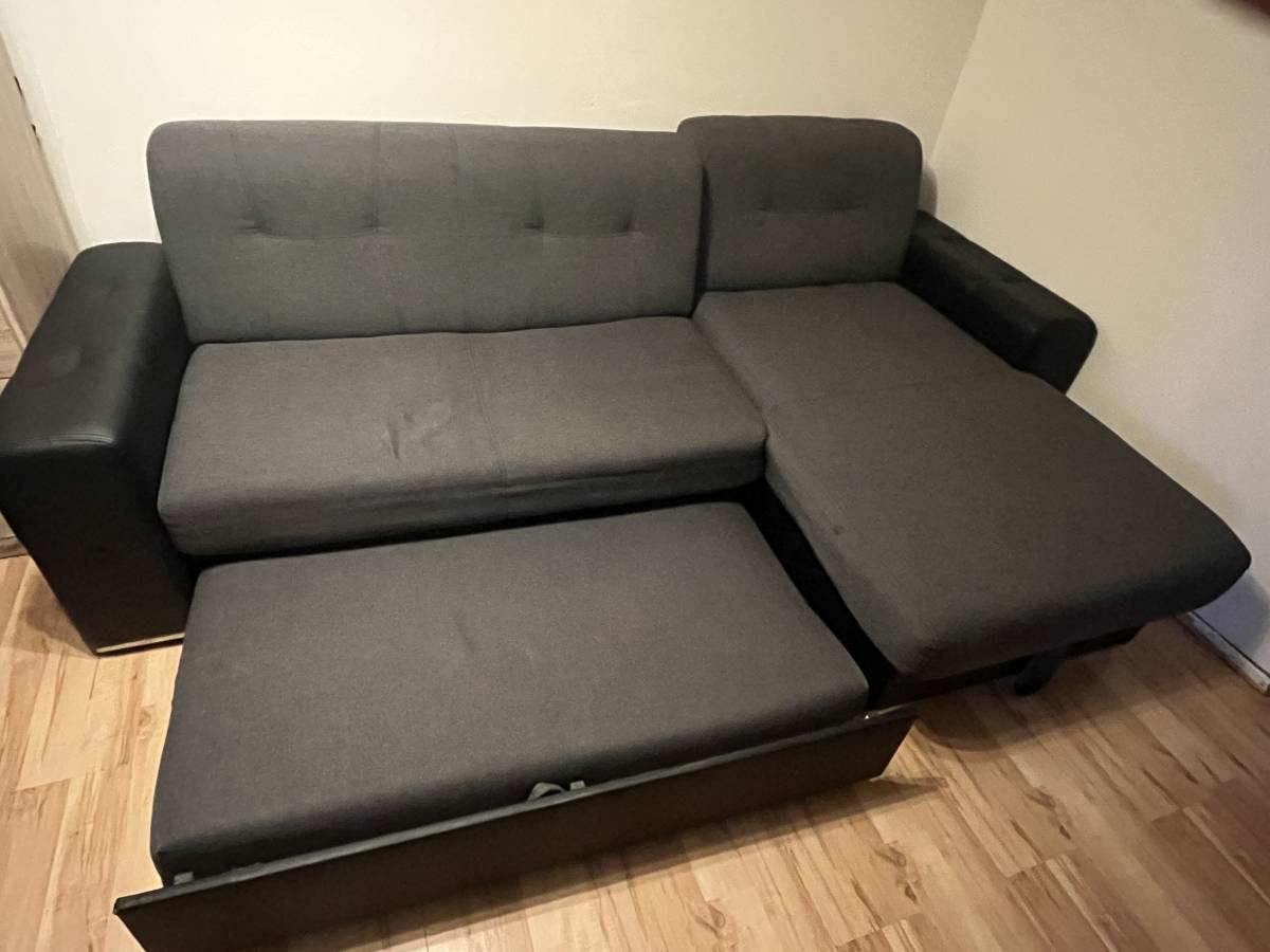Sedačka je rozkládací, ale konstrukce je narušena - pro použití je potřeba vysouvací část něčím podepřít.