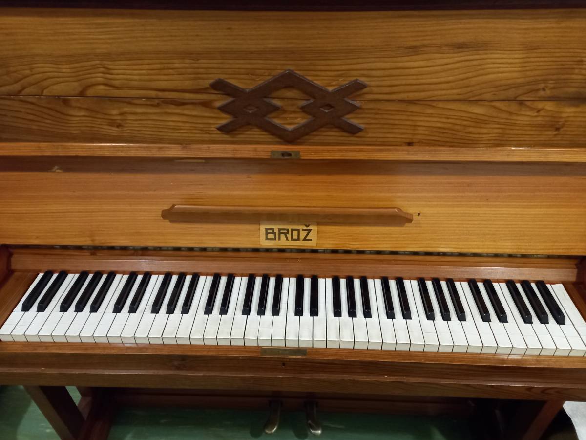 Daruji za odvoz pianino značky Brož. Vyrobeno zřejmě za první republiky. Výhodou pro ty, kdo mají málo prostoru, je menší šířka. Klaviatura má 43 bílých kláves. Vhodné pro začátečníky, děti ZUŠ apod. Stav odpovídající věku, laděné naposledy cca před 3 lety.