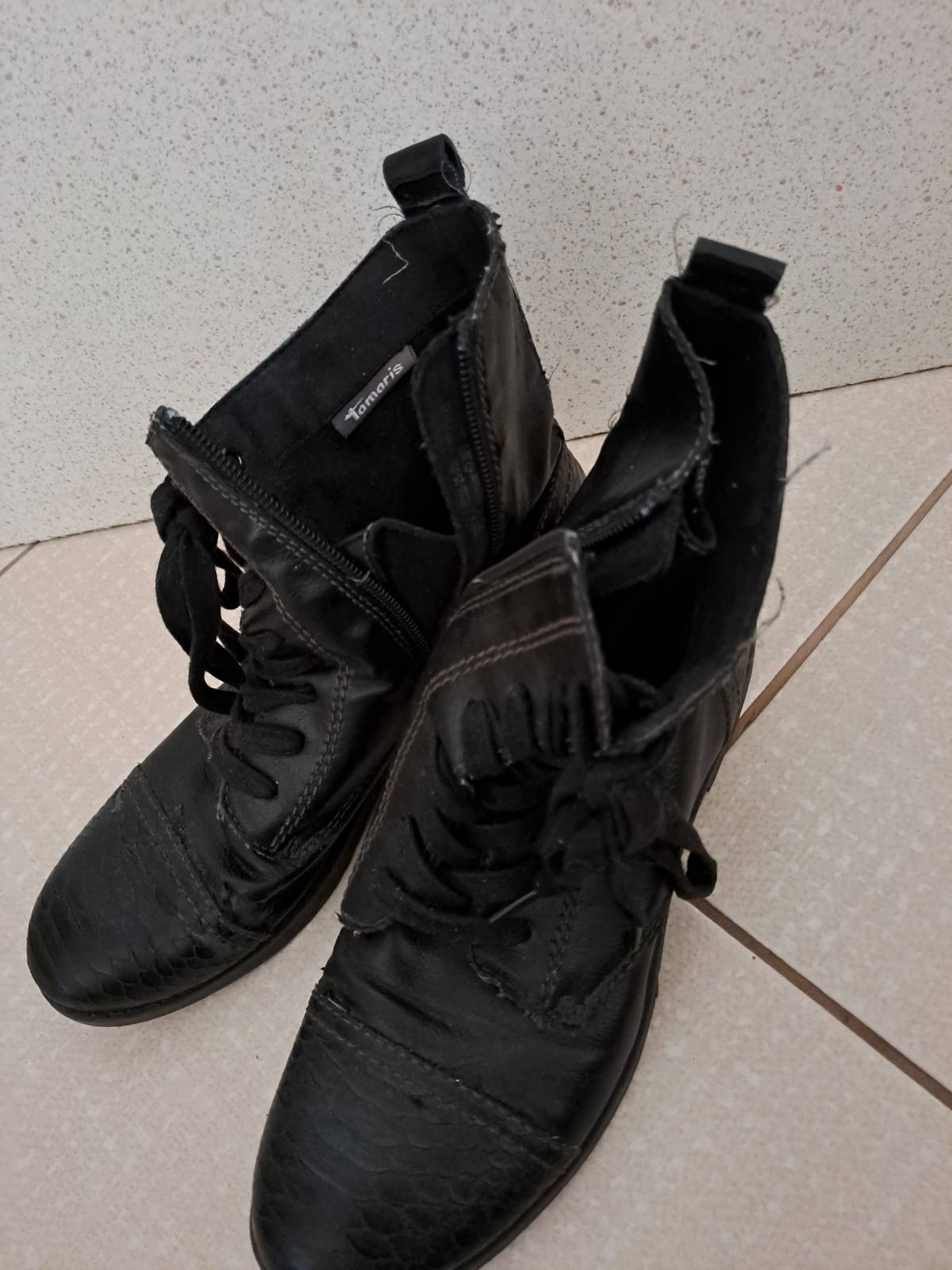 Daruji za odvoz kotníkové boty znm Tamaris vel. 38. Stav viz. foto. Stále velice pohodlné, nesešlapané, jenom se začíná loupat koženka.