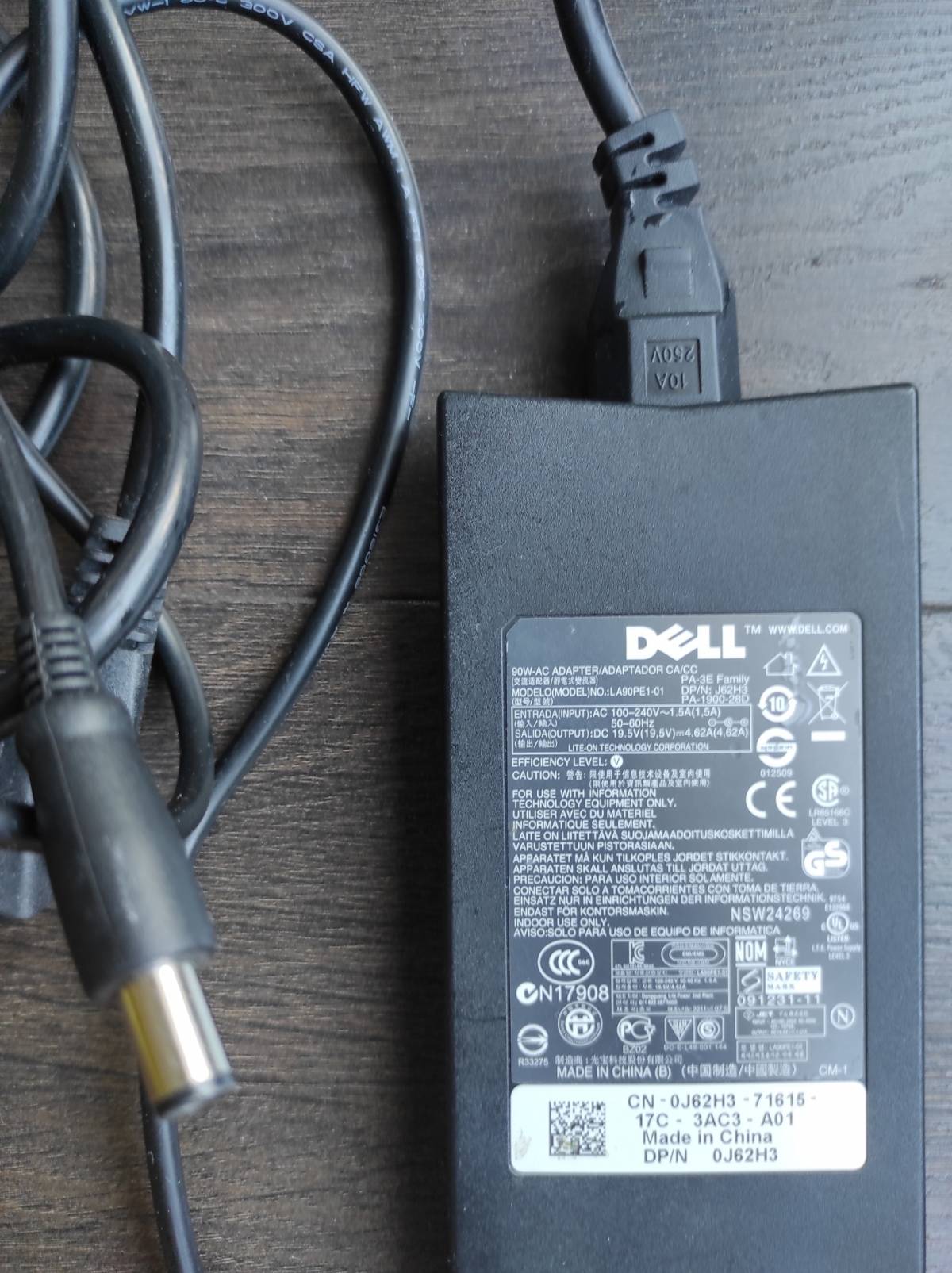 Nabíječka DELL model LA90PE1-01. Kulatá koncovka dle fotografií. Bohužel nemohu ověřit funkčnost.