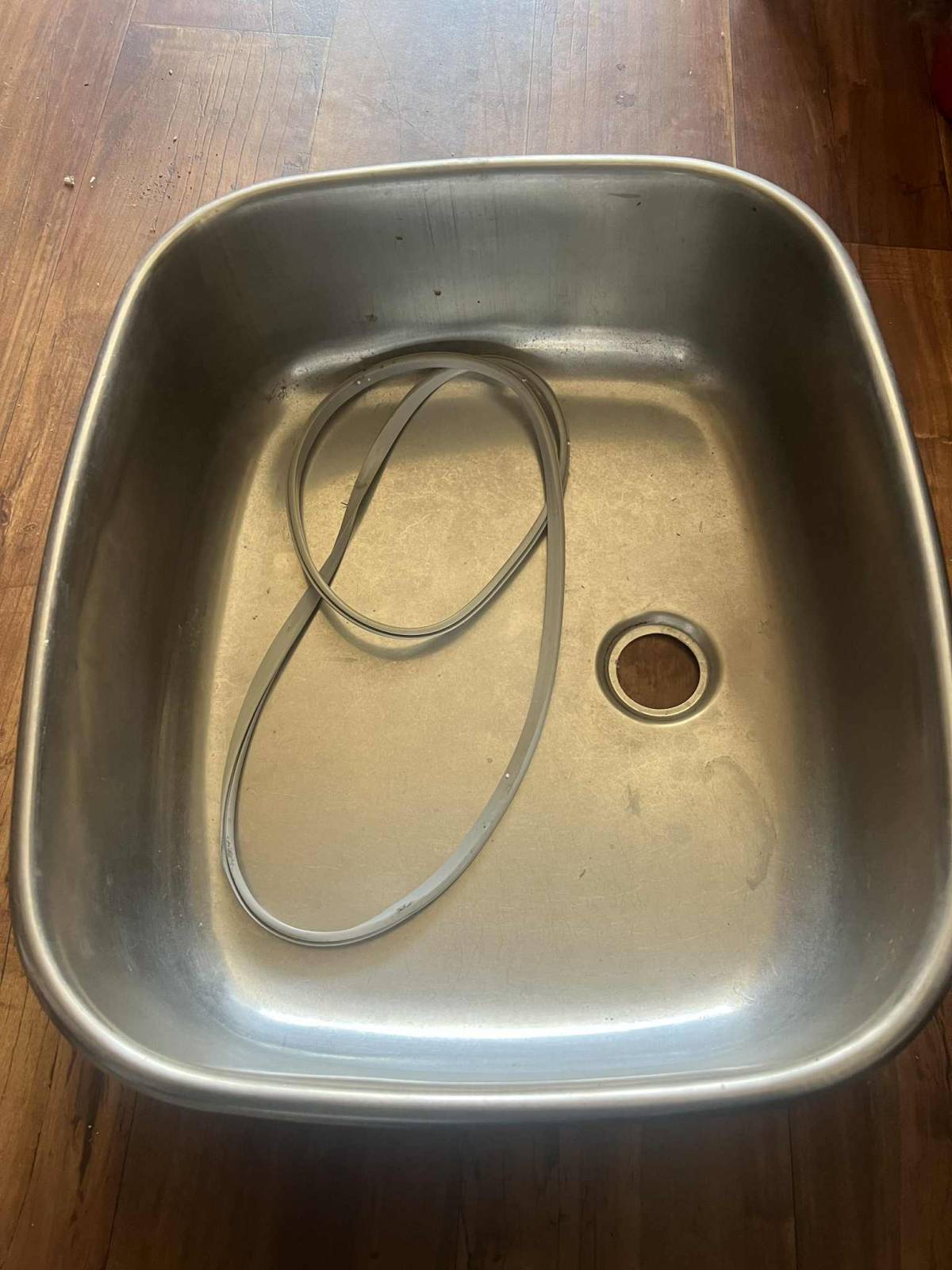Daruji za odvoz nerezový, nový dřez o velikosti 48 x40 x 16 cm.