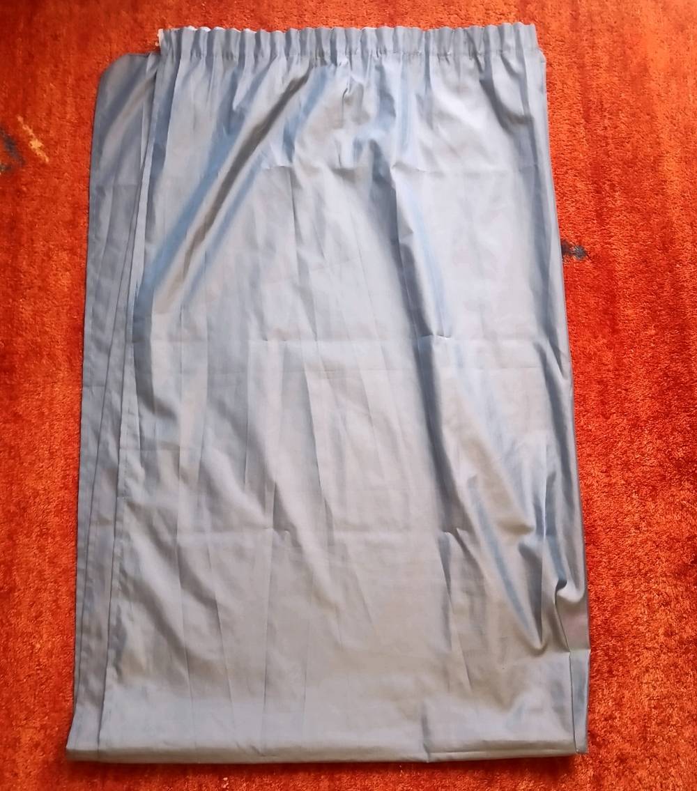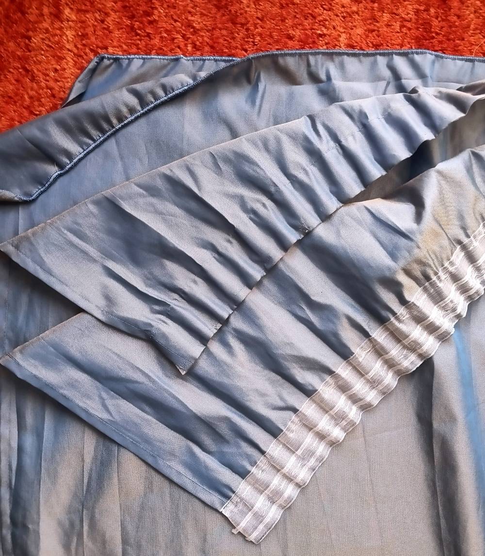 Daruji za odvoz modrý závěs se zlatavým odleskem, rozměr 150 š. x 230 v. Používaný, na jednom místě proseklý kocouřím drápkem, jinak bez poškození. Nahoře lem na nařasení, není úplně zatemňovací, lehce průsvitný.