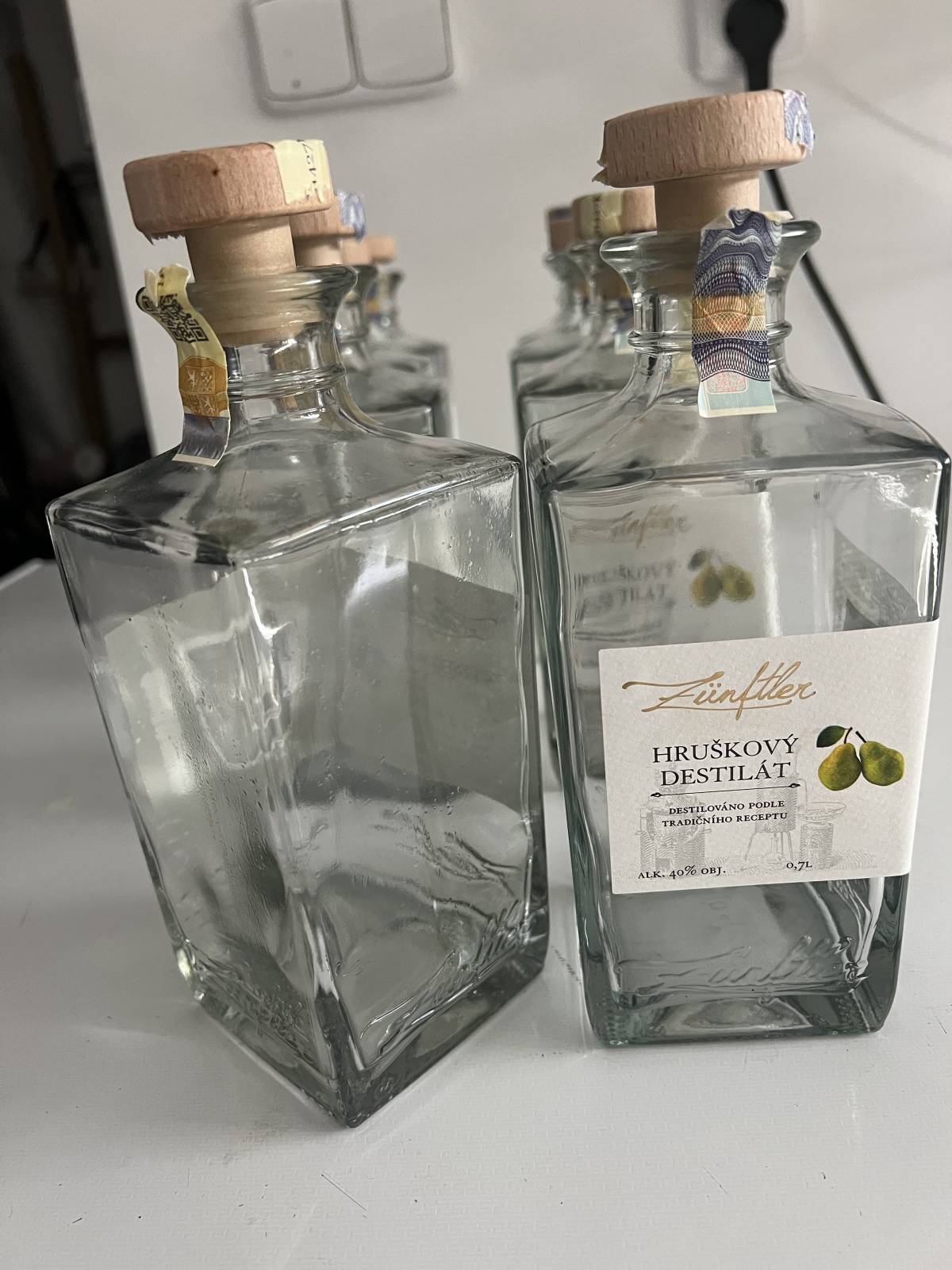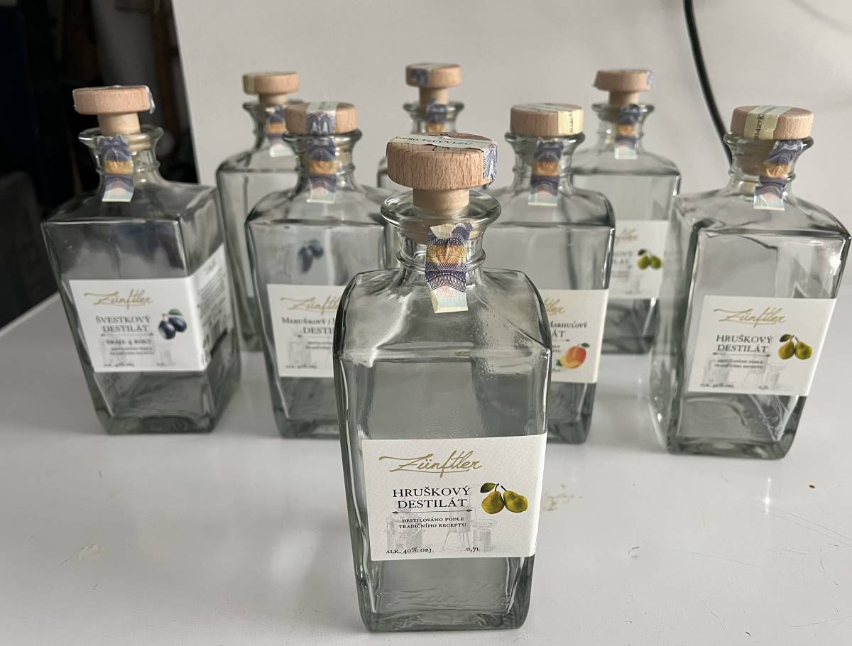 Daruji za odvoz krásné průhledné skleněné lahve s dřevěným uzávěrem.Super na jakýkoliv destilát nebo na vánoce na domácí vaječný likér apod…..stačí si umýt samolepky z nich….