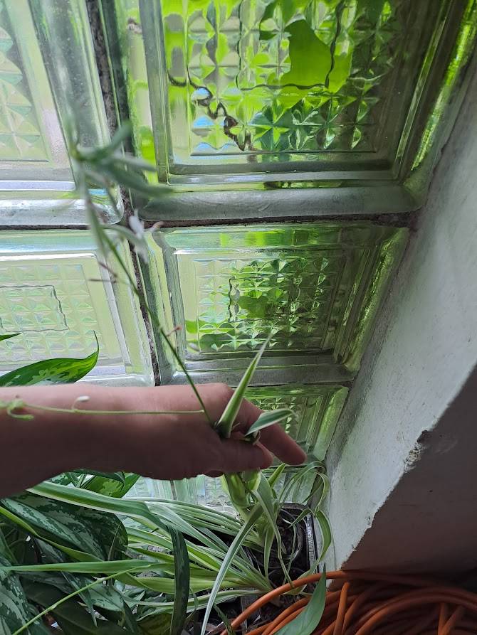4 od jednoho druhu, řízky, ještě nezakořeněné, ale ve vodě zakoření naprosto bez problému, a 2 zasazené od druhého druhu, ty dokonce už kvetou, tvoří dlouhé šlahouny, které vytvářejí "vodopád".