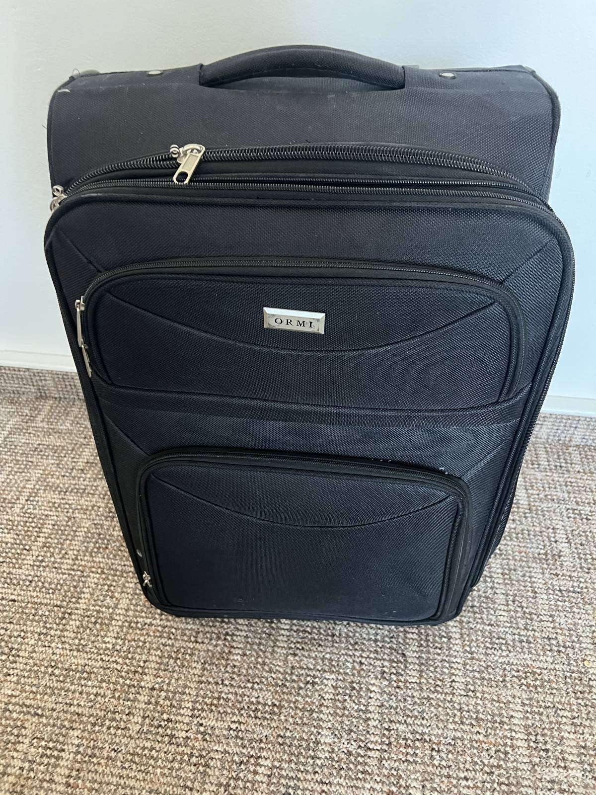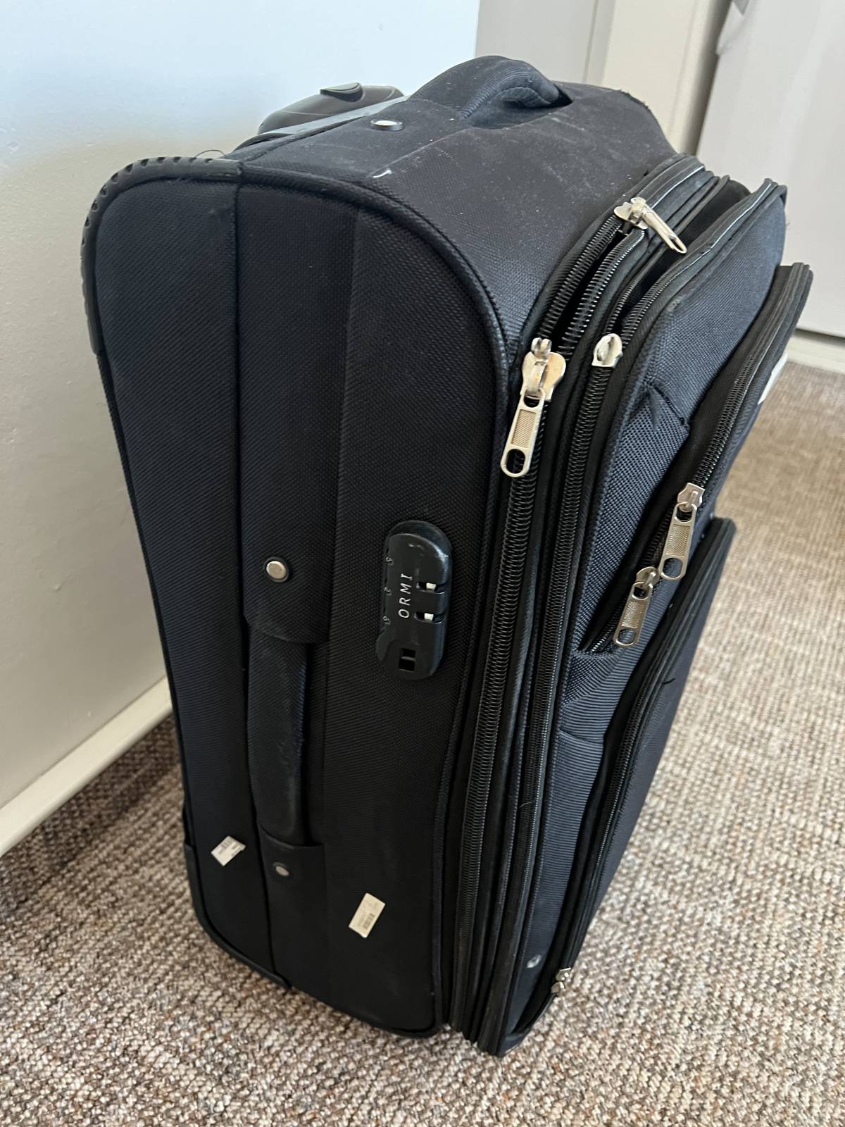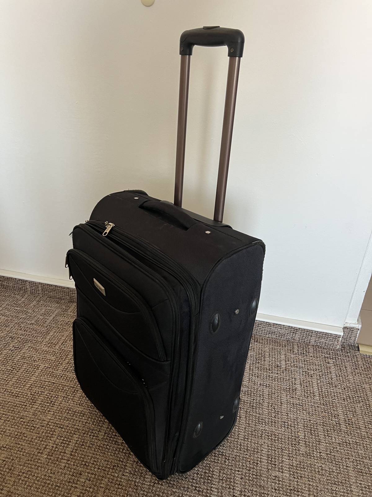 Daruji za odvoz černý kufr na dvou kolečkách s madlem.