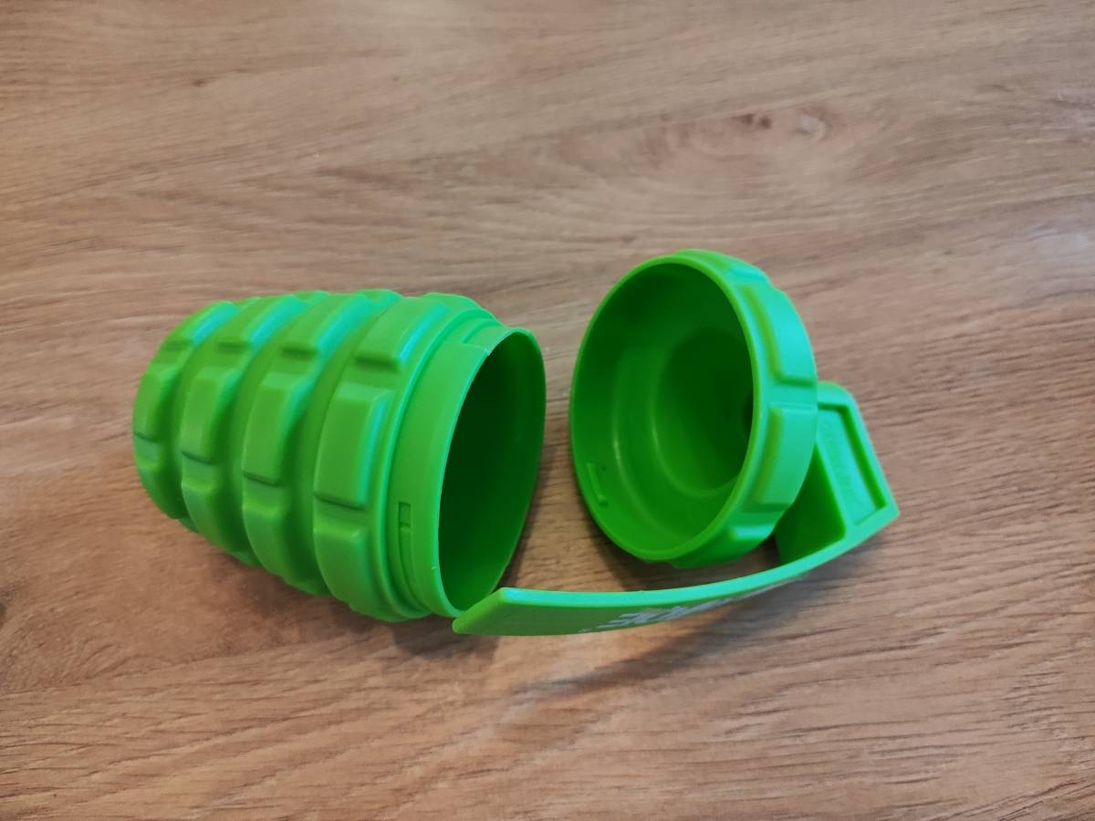 Daruji za odvoz bytelnou plastovou dozu ve tvaru granatu, vicko je sroubovaci.