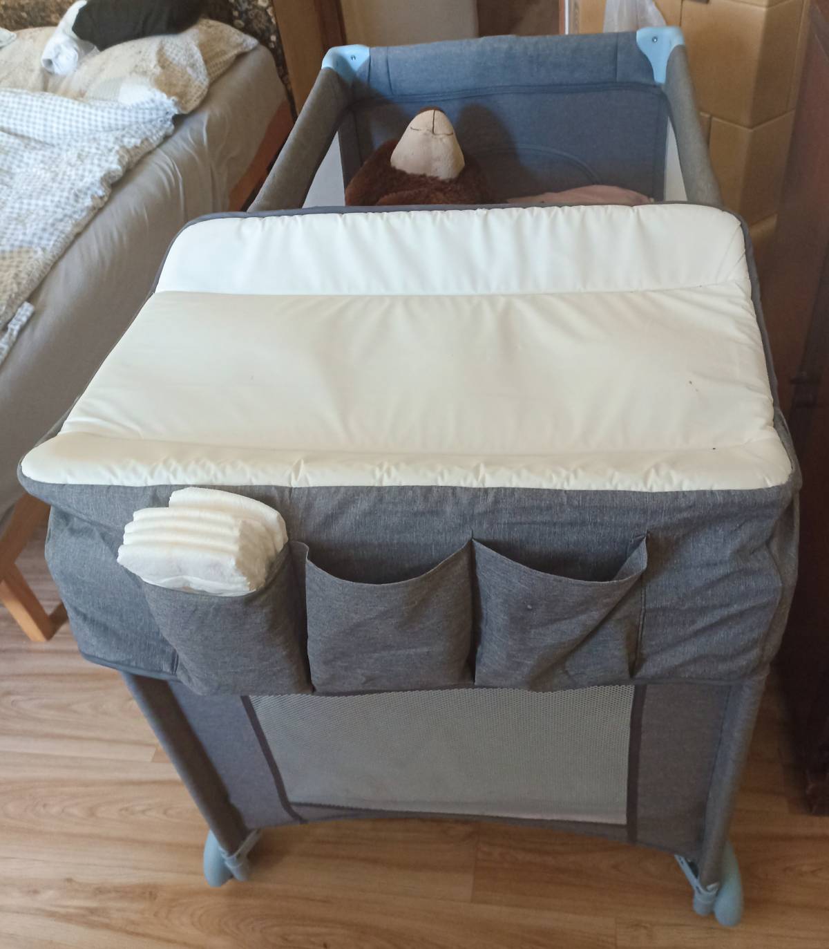 Daruji za odvoz dětskou postýlku. Její součástí je přebalovací pult, kapsy na věci, taška, návod. Kolotoč není součástí.