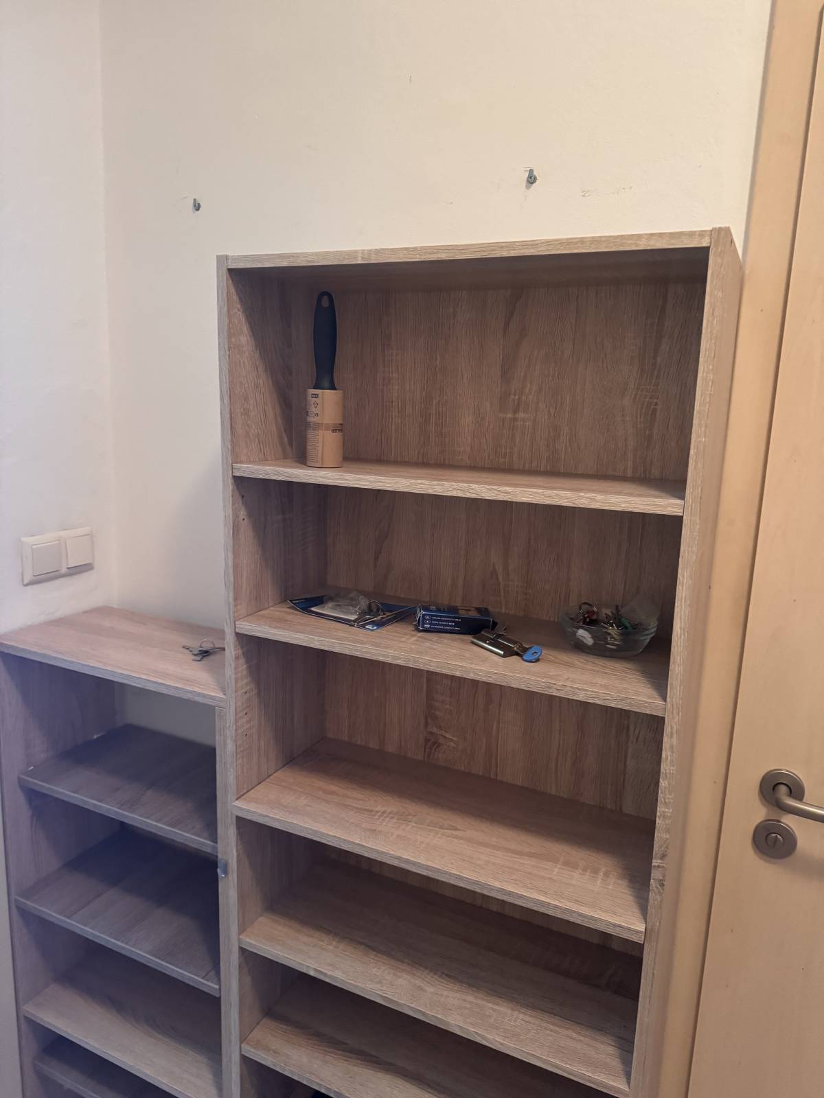 Daruji za odvoz dřevěnou dvoj knihovnu (botník). Jednotlivé díly spojeny k sobě.