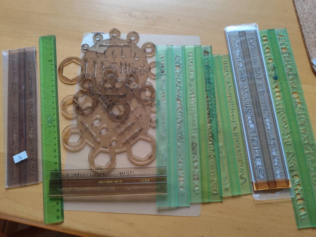 Daruji za odvoz různé velikosti písma, kružnic, pravítko...věci na technické kreslení. Asi už nikdo nepoužívá, ale třeba se někomu hodí