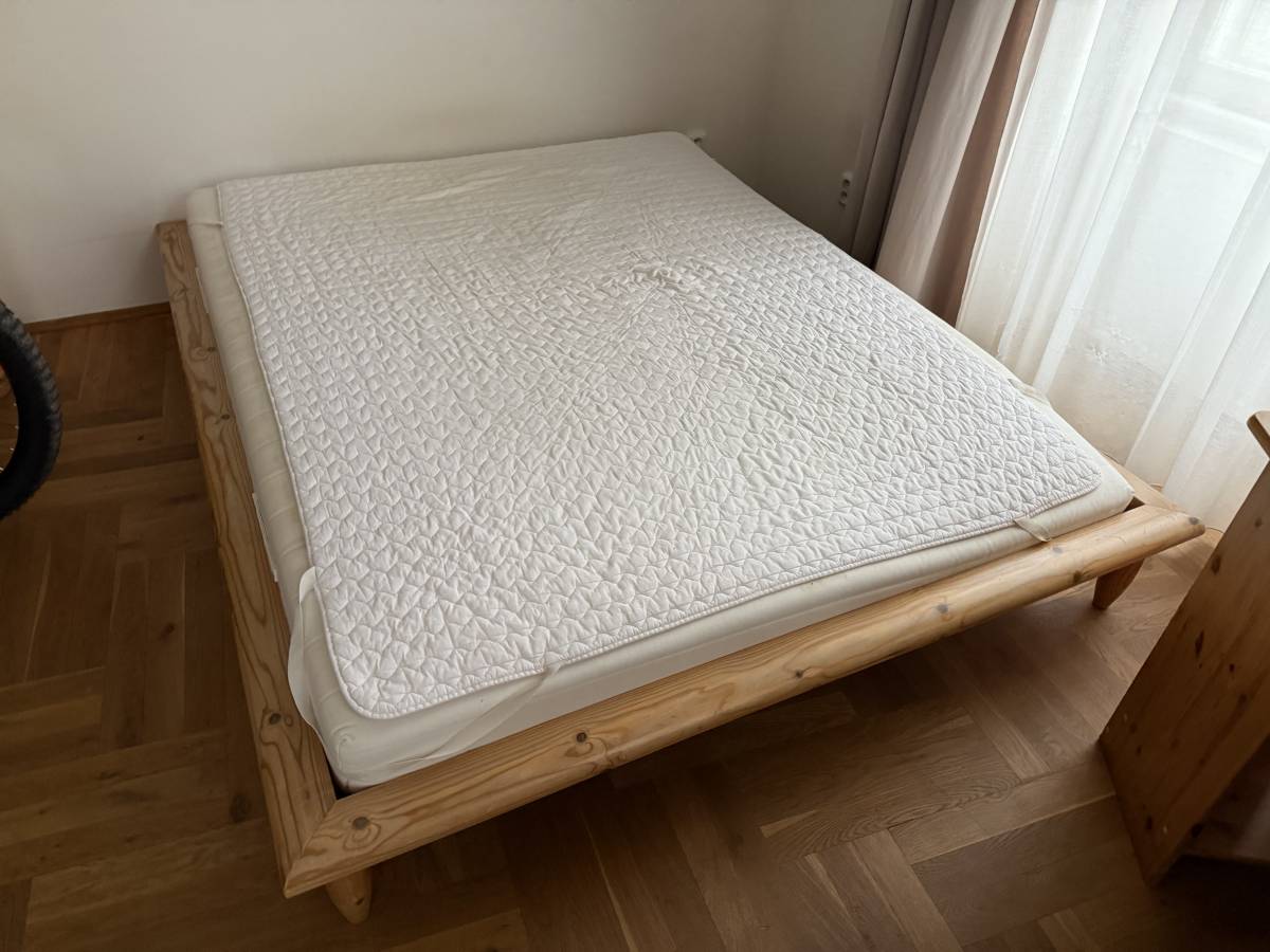 rám postele je plně funkční,u roštu chybí v jednom rohu lamely, lze doplnit, matrace je v ucházejícím stavu