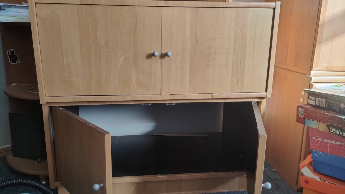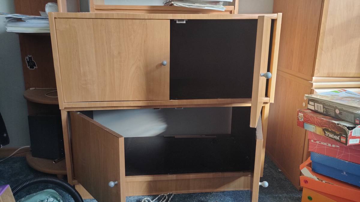 Daruji za odvoz 2 skříňky, na fotce stojí na sobě, ta spodní nemá zadní desku.