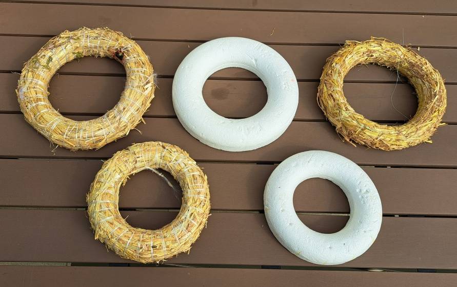 Velikost (průměry): 24 a 19 cm (polysterén) a 25, 23 a 20 cm (sláma).