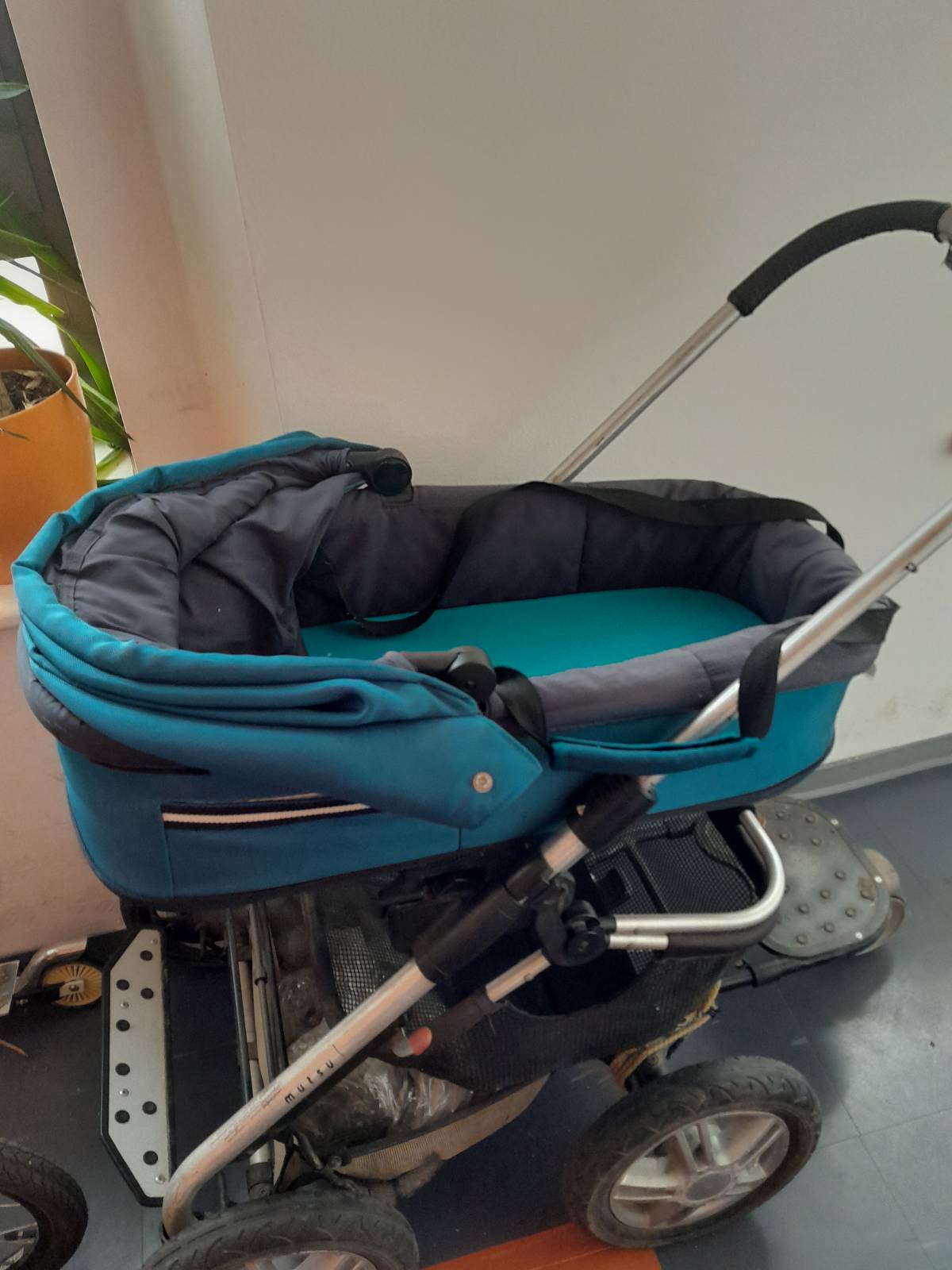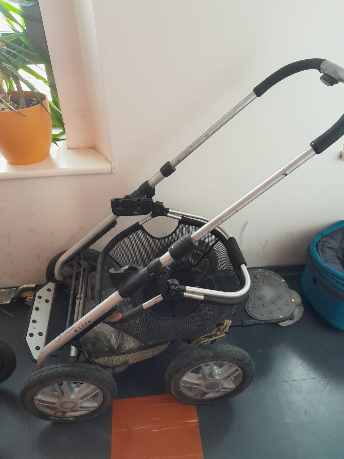 Daruji za odvoz sportovni kočár, který má i korbičku, deštníček(slunečnik), velký koš a stupínek pro druhé dítě. Stupínek má ulomenou součástku, která přichytává stupínek ke kočáru. Pujde určitě ještě opravit, mi už to neřešili, měli jsme ho připevněný gumicukem. Kolečka jsme kupovali nová, nejsou ani moc ojetá. Kočár se hodí do terénu. Je to značka Mutsy.