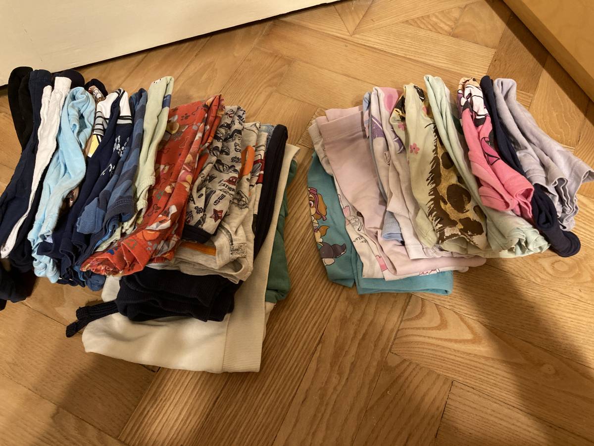 Daruji za odvoz dětské (holka i kluk) oblečení na donošení. Prosím pozor, na tričkách Jsou fleky a na legínkách občas dírka, ale komu by to nevadilo, tak nosit se to dá.