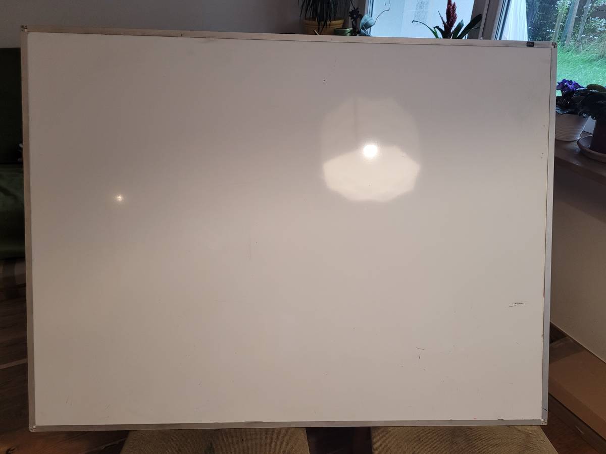 Daruji za odvoz Bílou magnetickou tabuli / Whiteboard 120x90cm. Funkční, použitá. Chybí krytky rohových děr na šrouby.