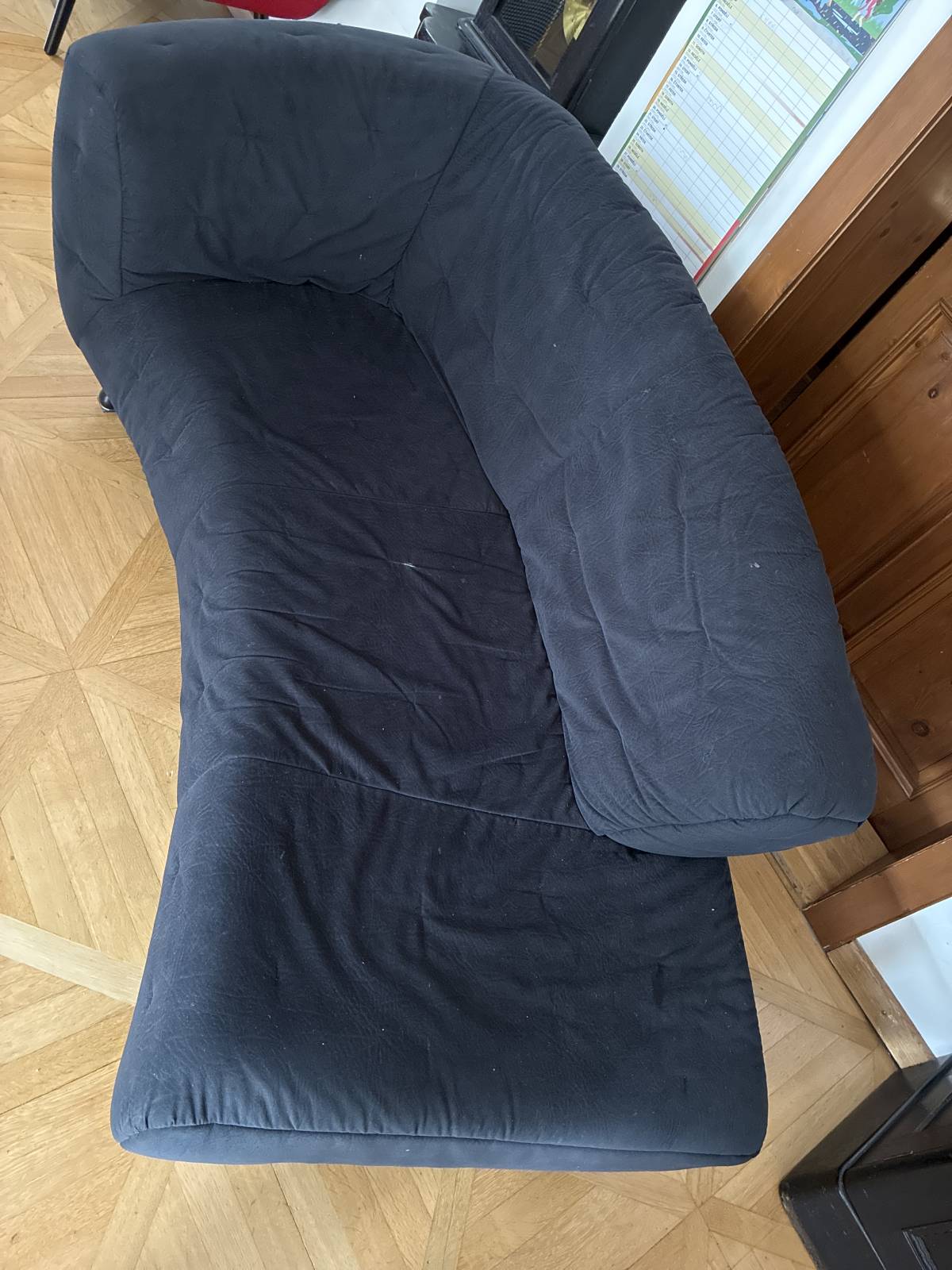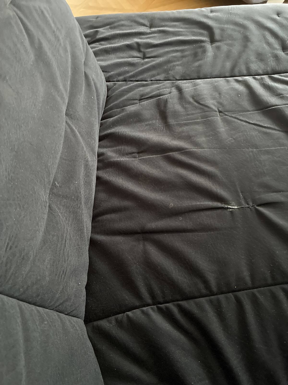 Daruji za odvoz lenošku, černé čalounění, rozměry cca 180x100cm, výška 80cm. Pár drobných vad (foto), jinak zachovalá, pohodlná.