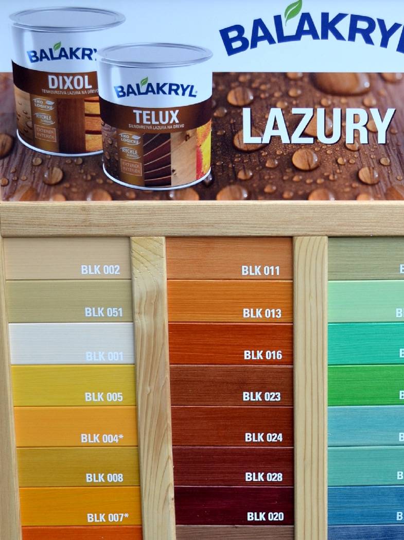 Daruji za odvoz cca. 2kg silnovrstvé lazury na dřevo značky Balakryl Telux se žlutým odstínem č. BZB 007 (viz tabulka na fotce).