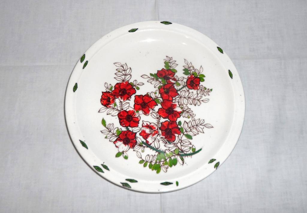 Daruji za odvoz ... Porcelánový dekorační TALÍŘ velký mělký, květinový motiv, bílá glazura, dodatečná barevná květinová malba - z myčky částečně setřená ... ... průměr cca 23,5 cm, tištěná značka porcelánky: Ditmar-Urbach Z / Znojmo, made in Czechoslovakia.