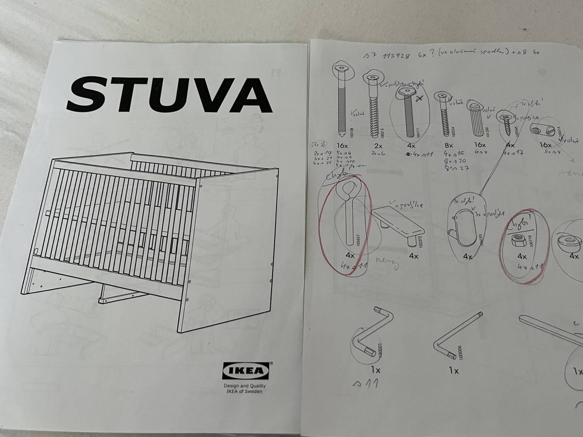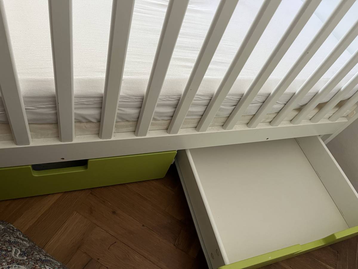 Daruji za odvoz dětskou postýlku IKEA Stuva s úložnými zelenými šuplíky. Místy drobné škrábance, je možné, že nějaký spojovací materiál chybí (ale rozhodně méně než je zaznamenáno na fotce návodu). Měli jsme ji bez jedné bočnice přiraženou k posteli, k tomuto použití je vše. Předání u autobusové zastávky Hybšmanka.