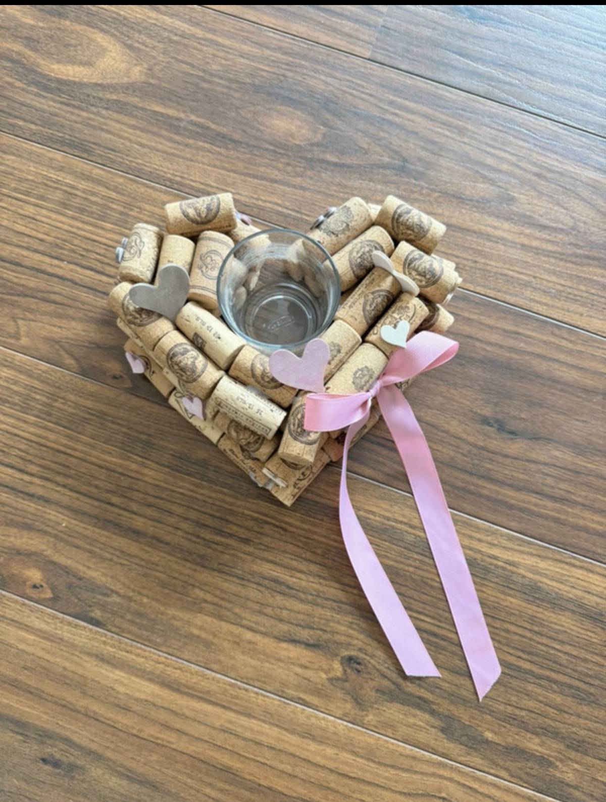 Handmade vyrobeno z korku. Uprostred misto na sklenicku se svickou ( na velikost ikea svicky). Idealni na stul.