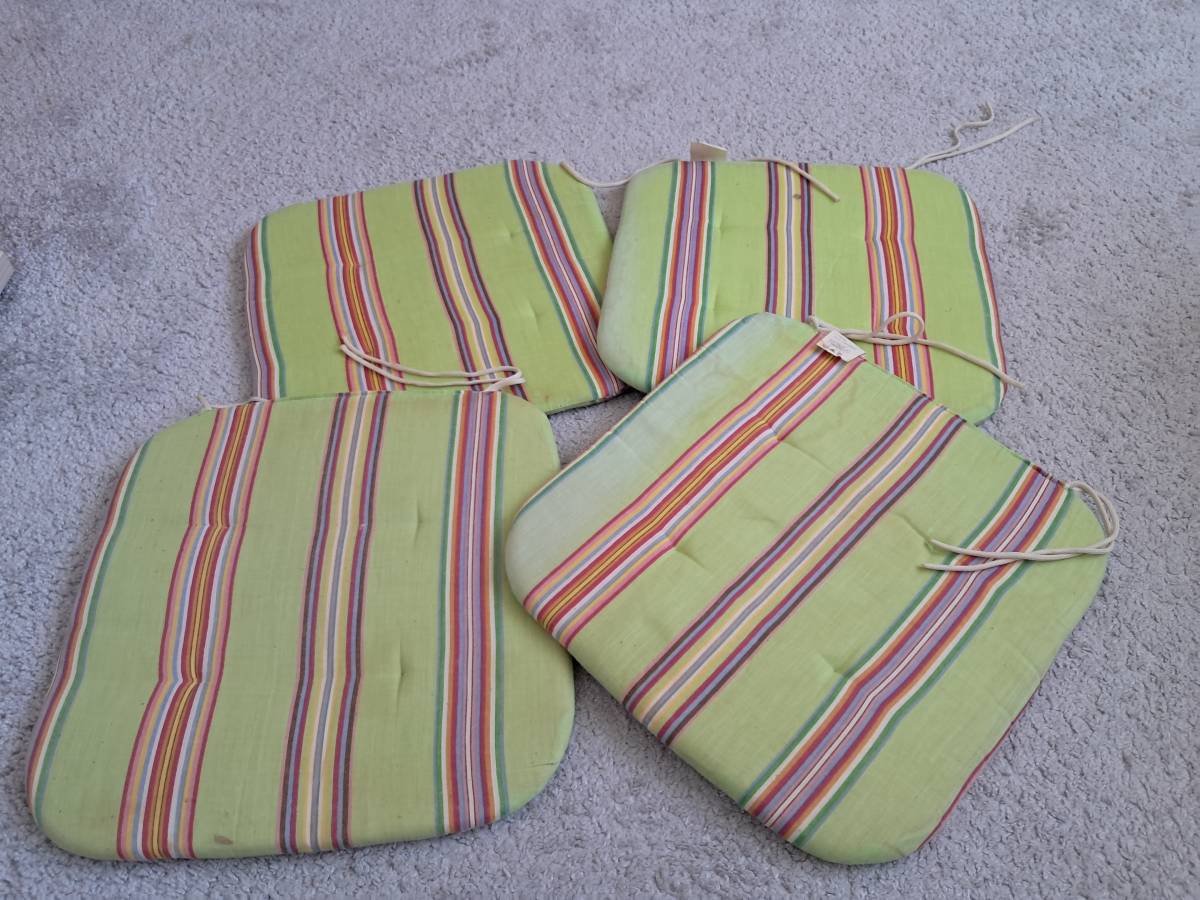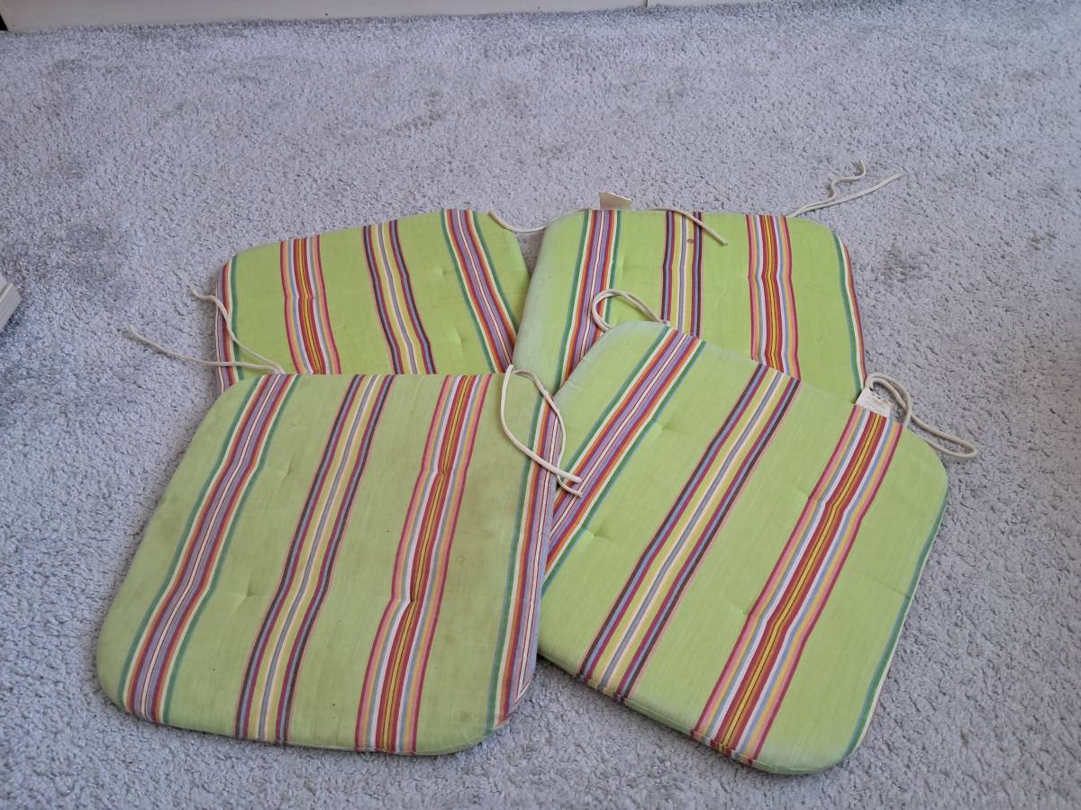 Daruji za odvoz 4 podsedáky na židle. Jsou zašpiněné, ale třeba by šlo vyprat, nezkoušela jsem, ale nejsou nijak potrhané.