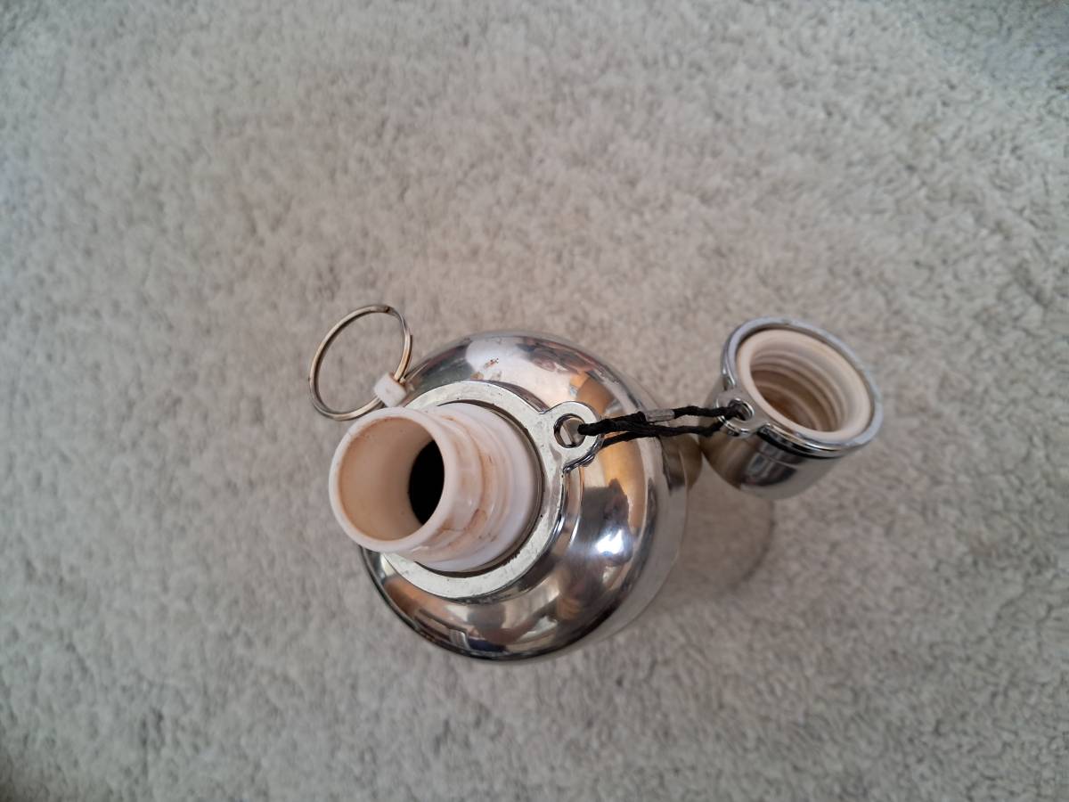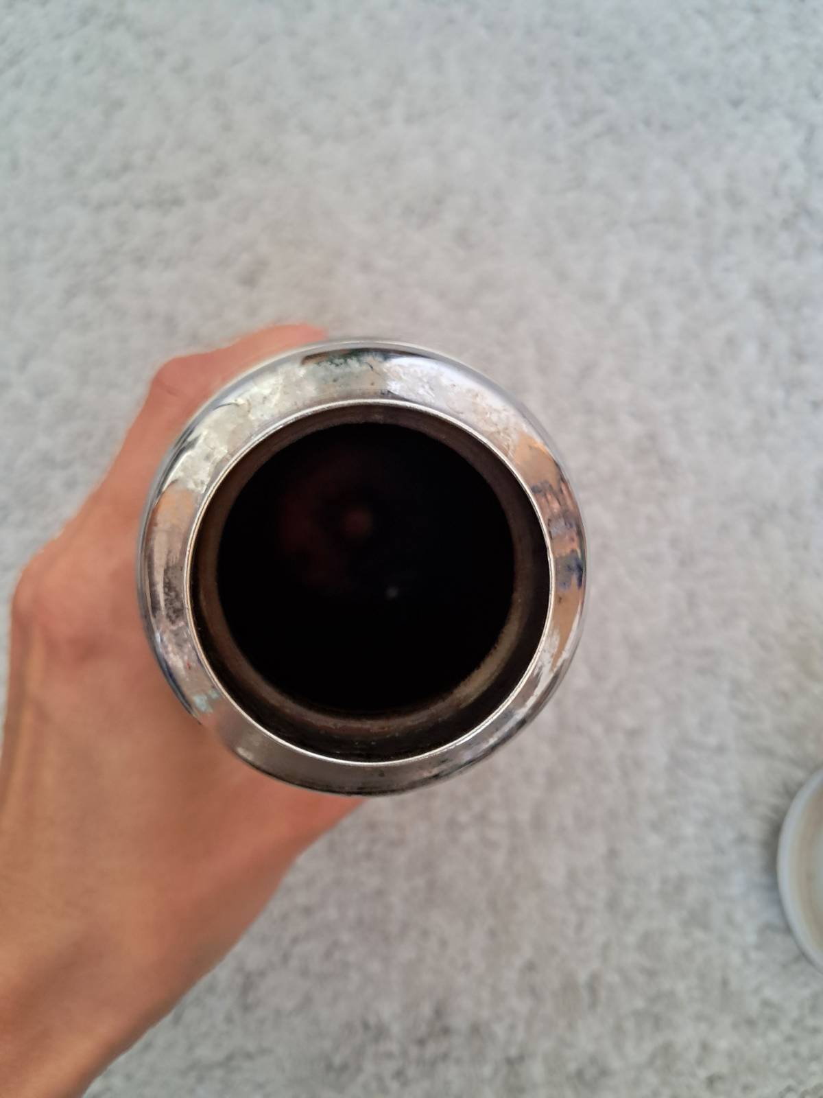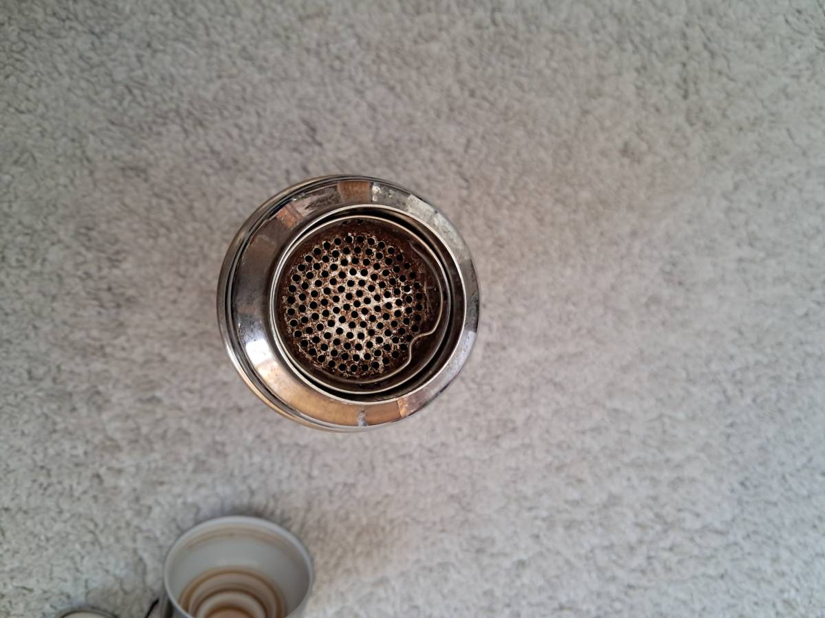 Daruji za odvoz Termosku se sítkem uvnitř. Bylo v ní kafe, takže je od kafe špinavá, musí se umýt.