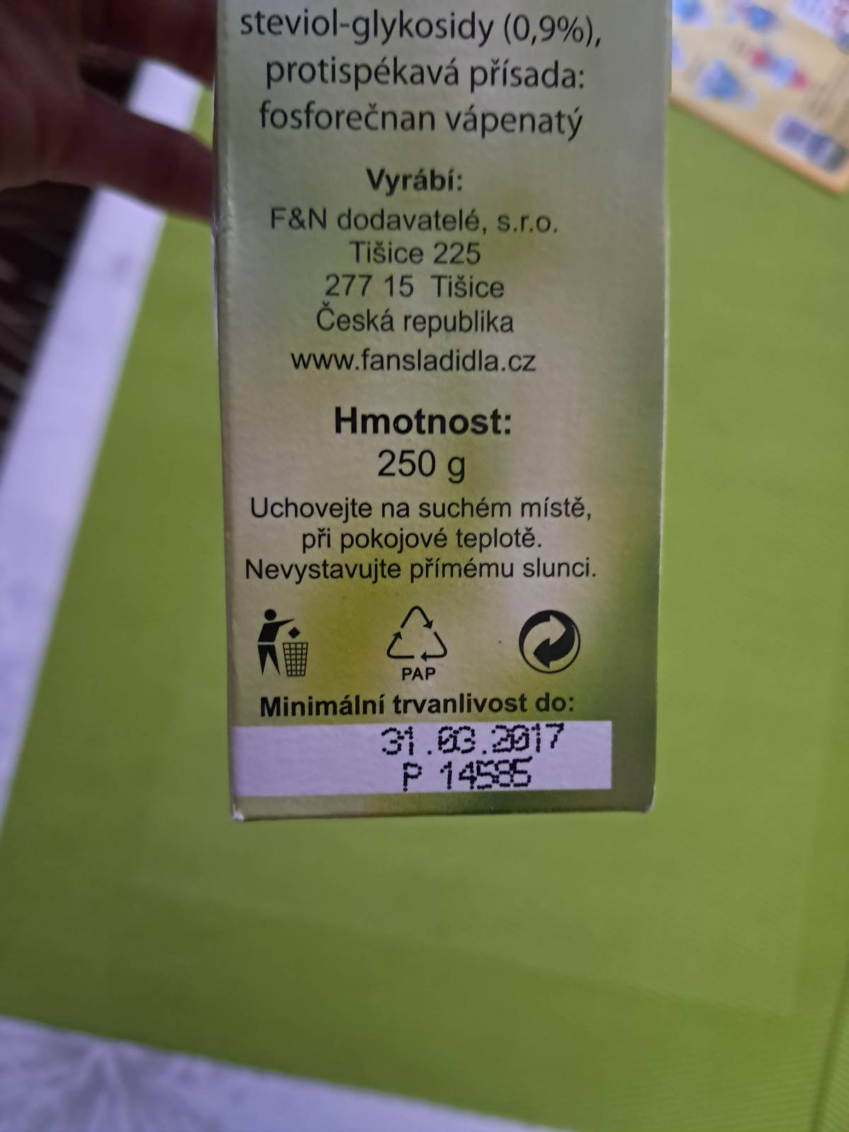 Daruji za odvoz práškové stolní sladidlo, po datu expirace, určitě tomu nic není. Otevřené.