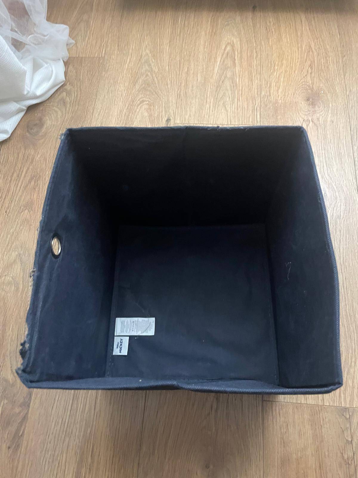 Daruji za odvoz dva stejné úložné boxy. Látkové, dají se snadno rozložit (foto - jsou pak zcela pluché). Používané (vidět na foto), ale určitě ještě lze využít. Obrázek pouze z jedné strany, jinak jednobarevné. Předání Praha 3 - ul. Boleslavská.