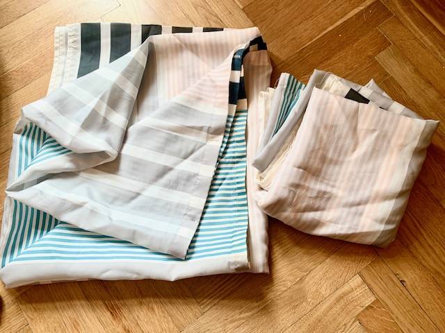 Daruji 2 textilní závěsy do sprchy z IKEA. Používané, ale v dobrém stavu, občas leze nit, ale nijak zásadní vady.