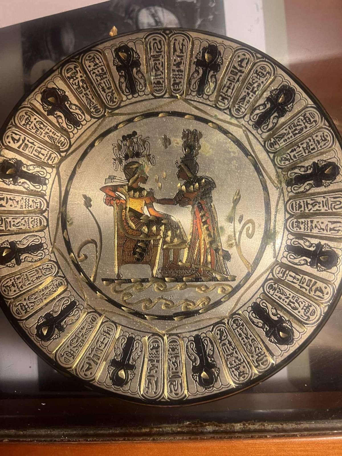Daruji za odvoz měděný talířek z Egypta průměr 15cm, vhodný i na zavěšení nebo na stůl, nepoškozený.