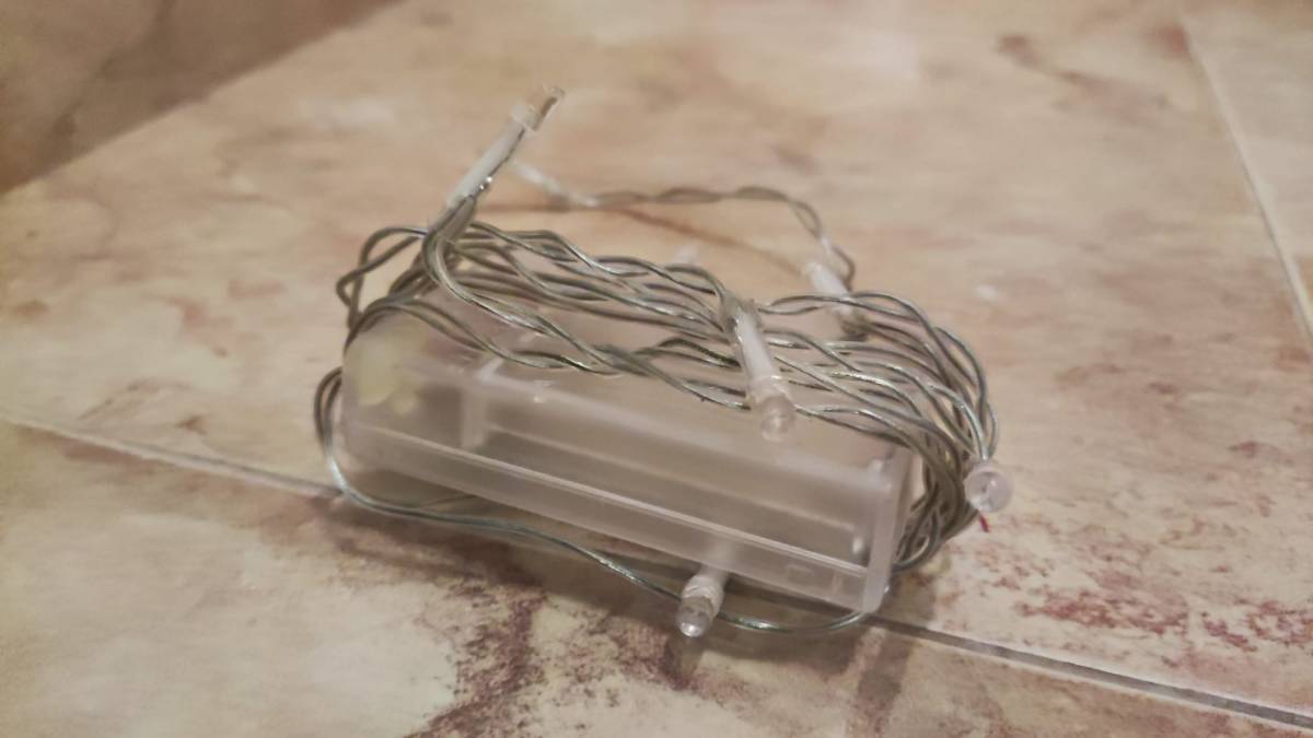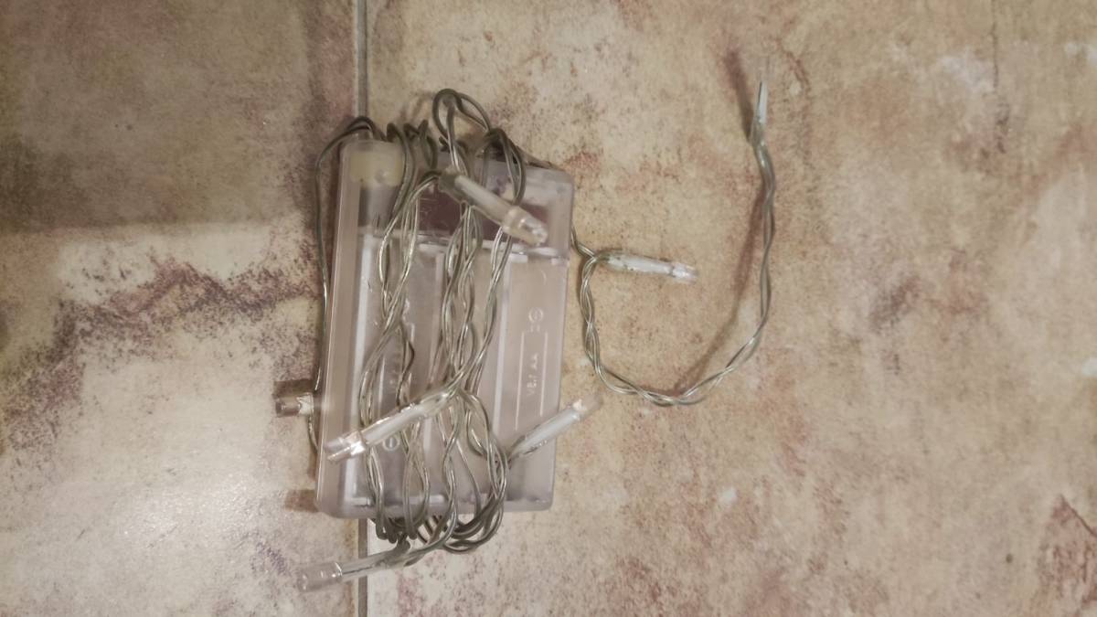 Daruji za odvoz vánoční světýlka bílé barvy na 3 tužkové baterie. Dá se tedy použít kdekoliv na výzdobu. Délku toho řetezu nevím, asi 1 metr +/-