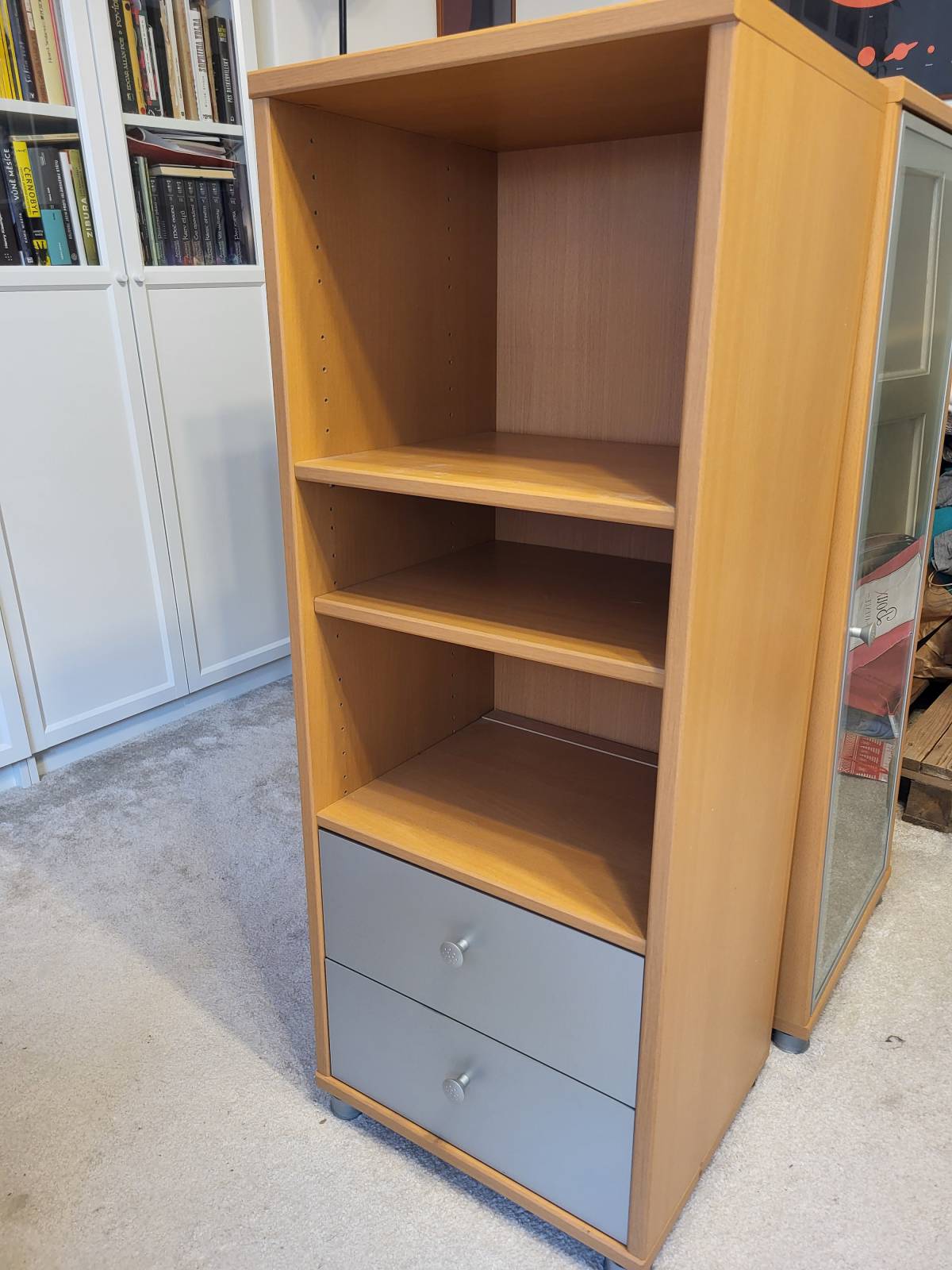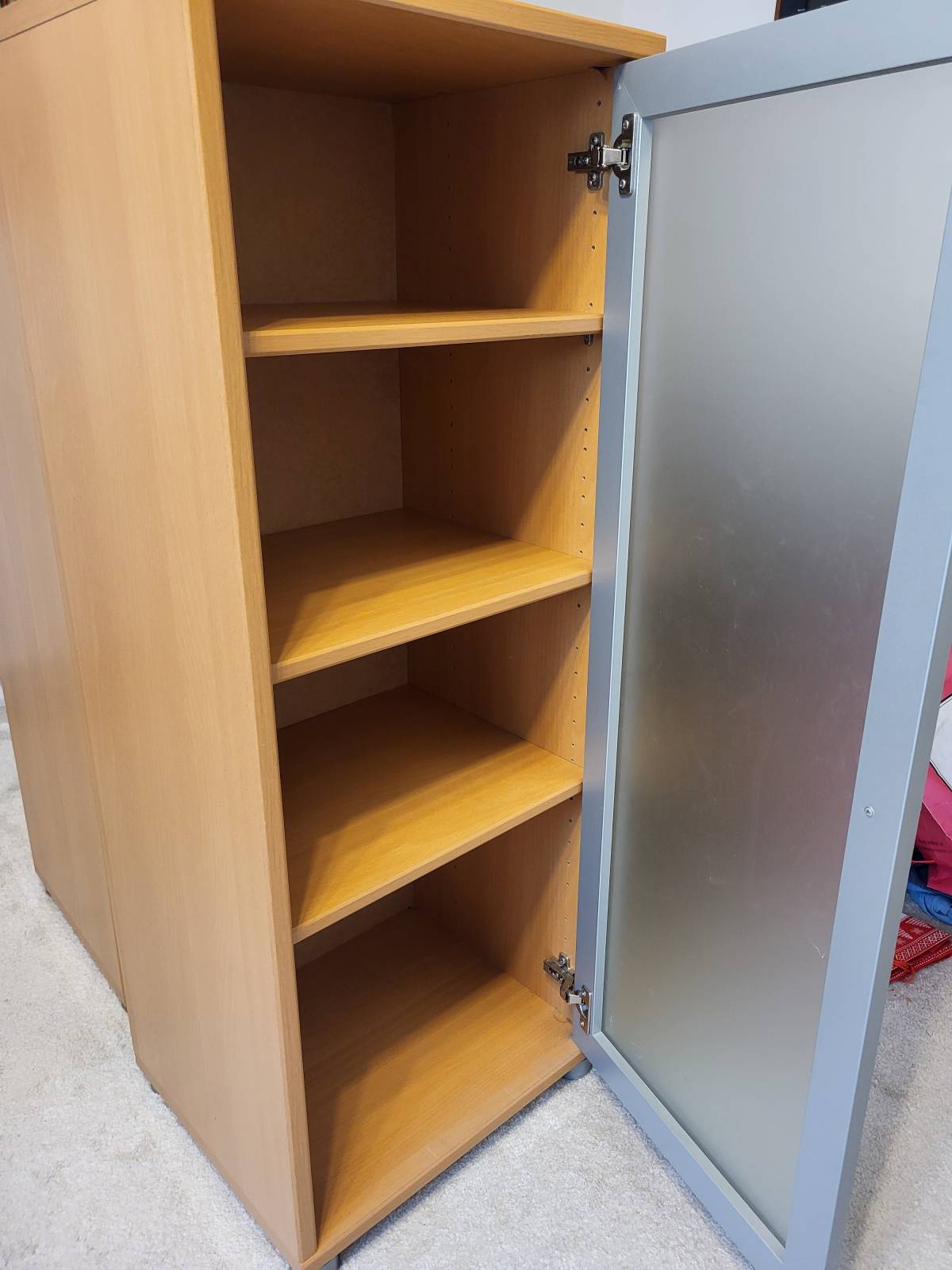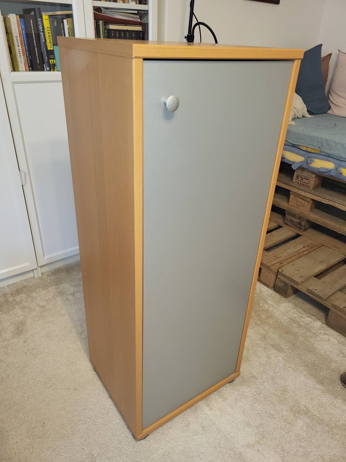 Nabízím zdarma za odvoz sadu 3 ks skříněk ve stejném dekoru, avšak s rozlišnou dispozicí. Všechny mají stejné rozměry (výška, šířka, hloubka) 122x48x40. Nabýtek má lehké kosmetické vady, ale jinak je plně funkční.