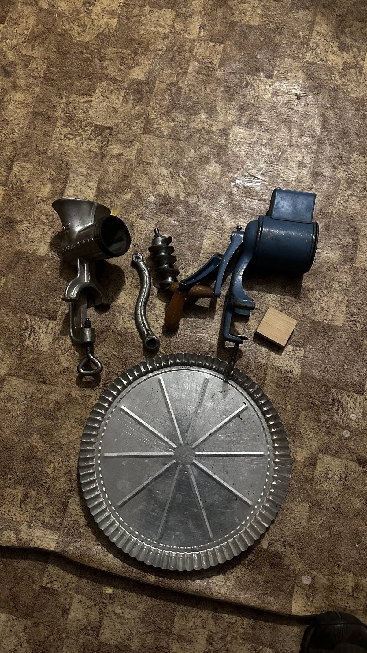 Daruji za odvoz starý mlynek na strouhanku (kompletní) a nekompletni mlýnek na maso a plechovou formu na koláč. Dolní Měcholupy
