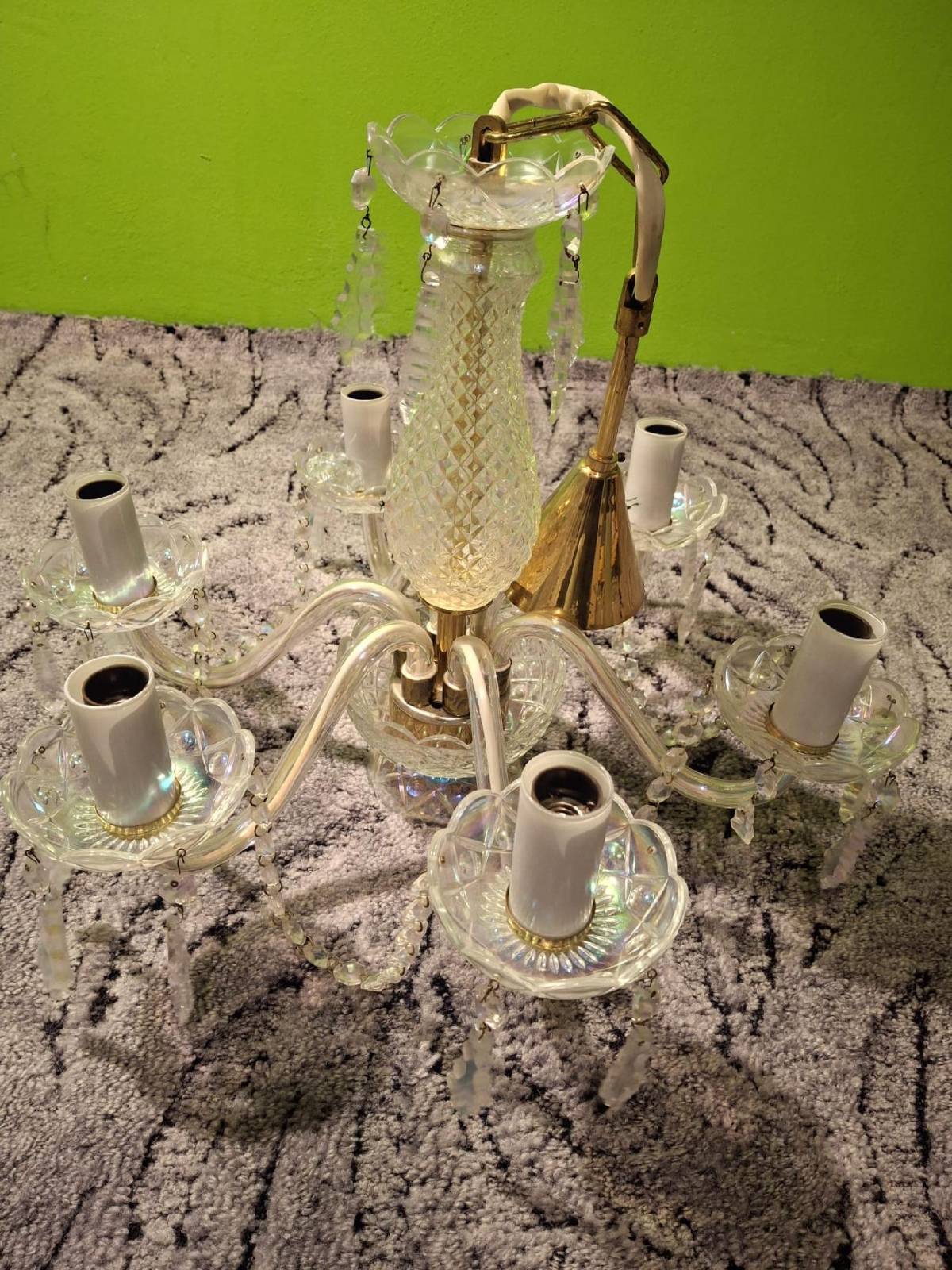 Daruji za odvoz plně funkční skleněný lustr, se všemi přívěsky. Bohužel jeden je zlomený.