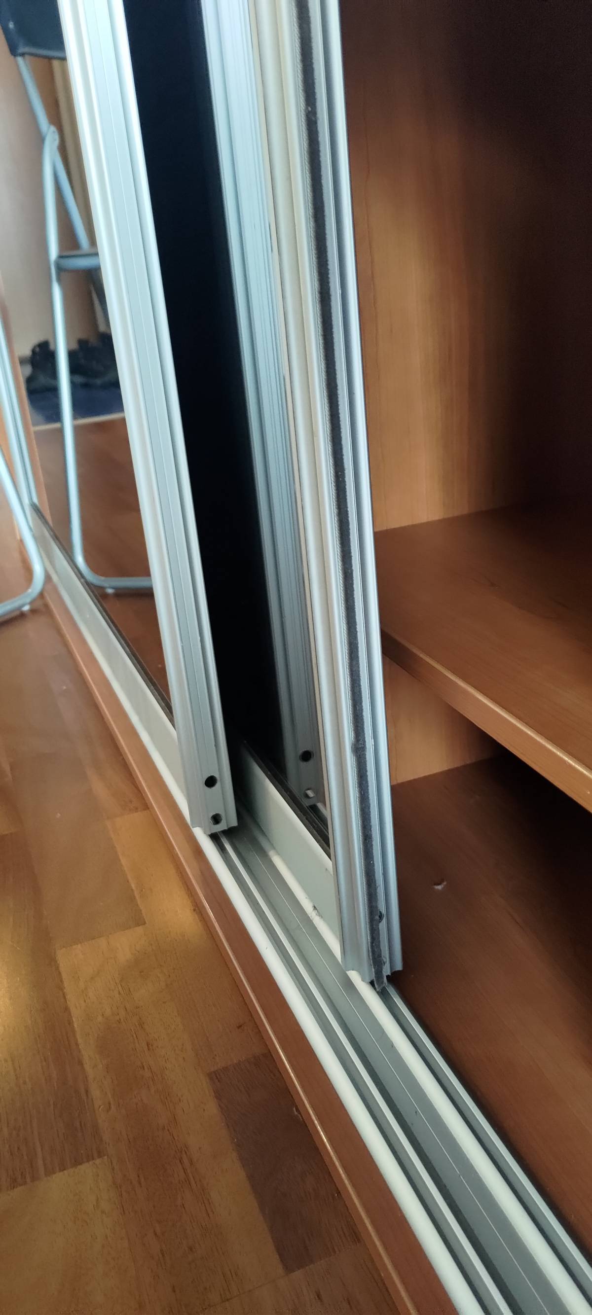 Byla patrně budována na míru (za skříní jsou zatmelené škvíry atp.), zájemce si proto musí skřín sám kompletně rozebrat a snést (7. patro, výtah je nicméně prostorný, všechny komponenty by se měly vejít).