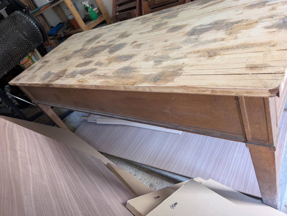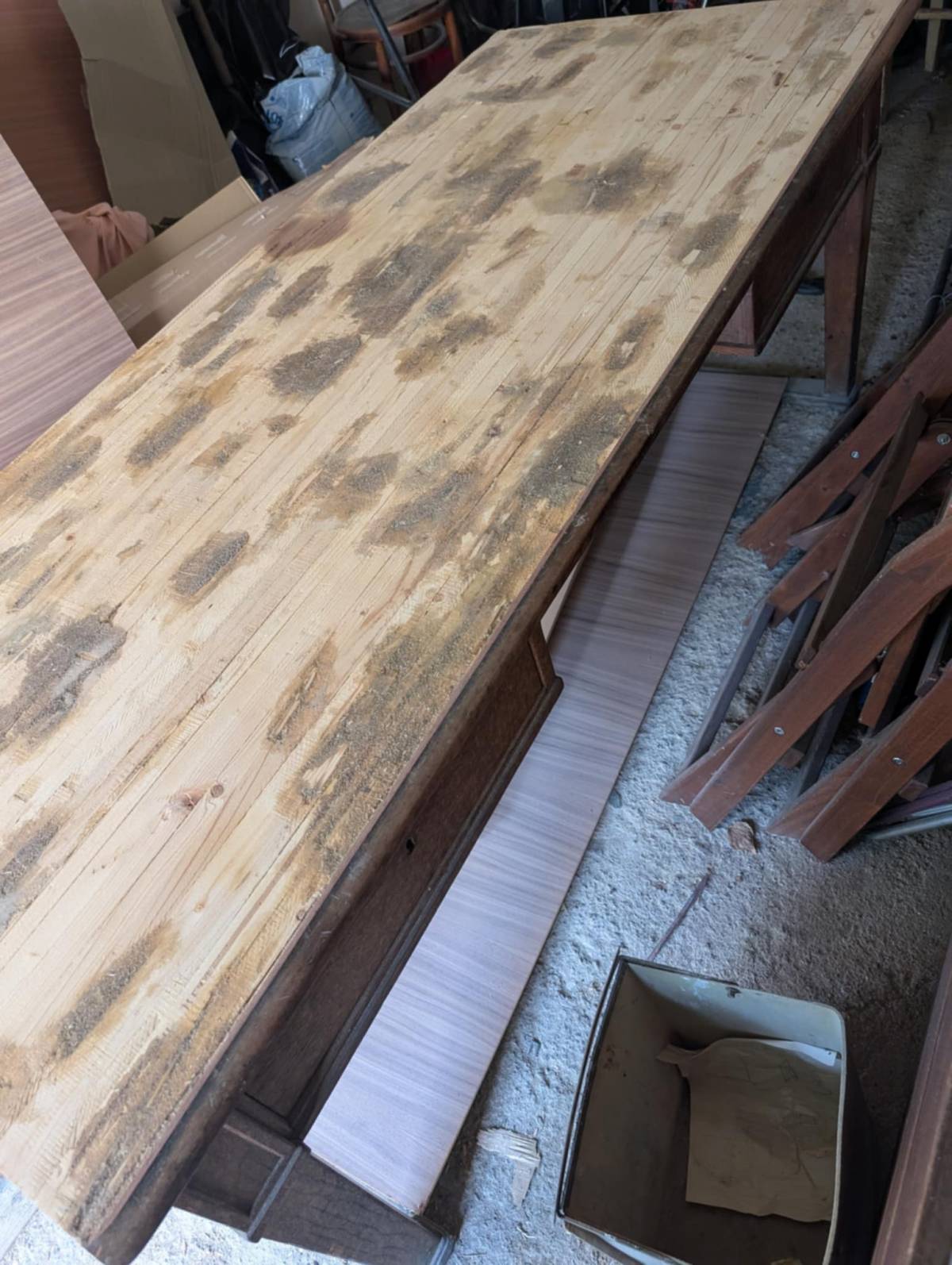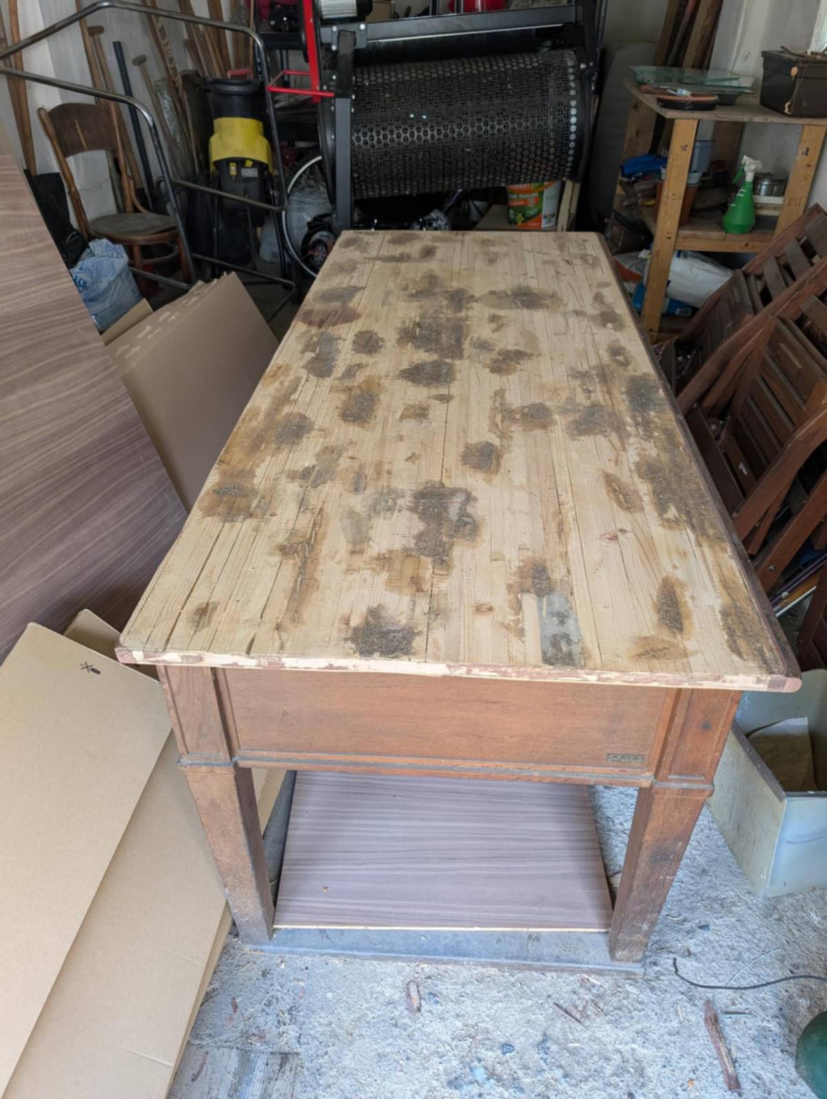 Darují masivní starý učitelský stůl – poctivá a velmi stabilní konstrukce. Stůl je rozpracovaný v rámci renovace: konstrukce je obroušená z větší části, stačí ji jen lehce přebrousit a znovu nalakovat. Horní deska potřebuje novou vrchní vrstvu – dýhu nebo dýhovanou překližku. Přidám zdarma připravenou dýhovanou překližku, kterou jsem měl v plánu na desku přilepit (je vidět na fotkách).