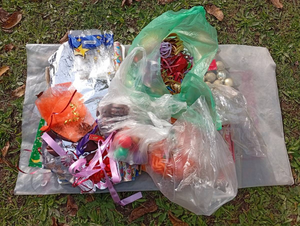 Daruji za odvoz vánoční papíry více let staré, (nejsou moc vidět na fotu), ozdoby v obalu ve tvaru stromečku, hvězdičky, stužky, bavlnky. Na Velikonoce asi dřevěná ozdobná vajíčka a ozdobné papíry. Vše již zřejmě použité. Na fotu to není moc vidět. Věci jsou odnosné ve větším igelitu, ve kterém věci jsou.
