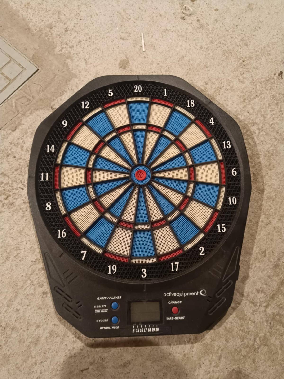 Daruji za odvoz terč na šipky. Má díru na nabíječku, my ji bohužel ztratili, ale je to standartní typ.
