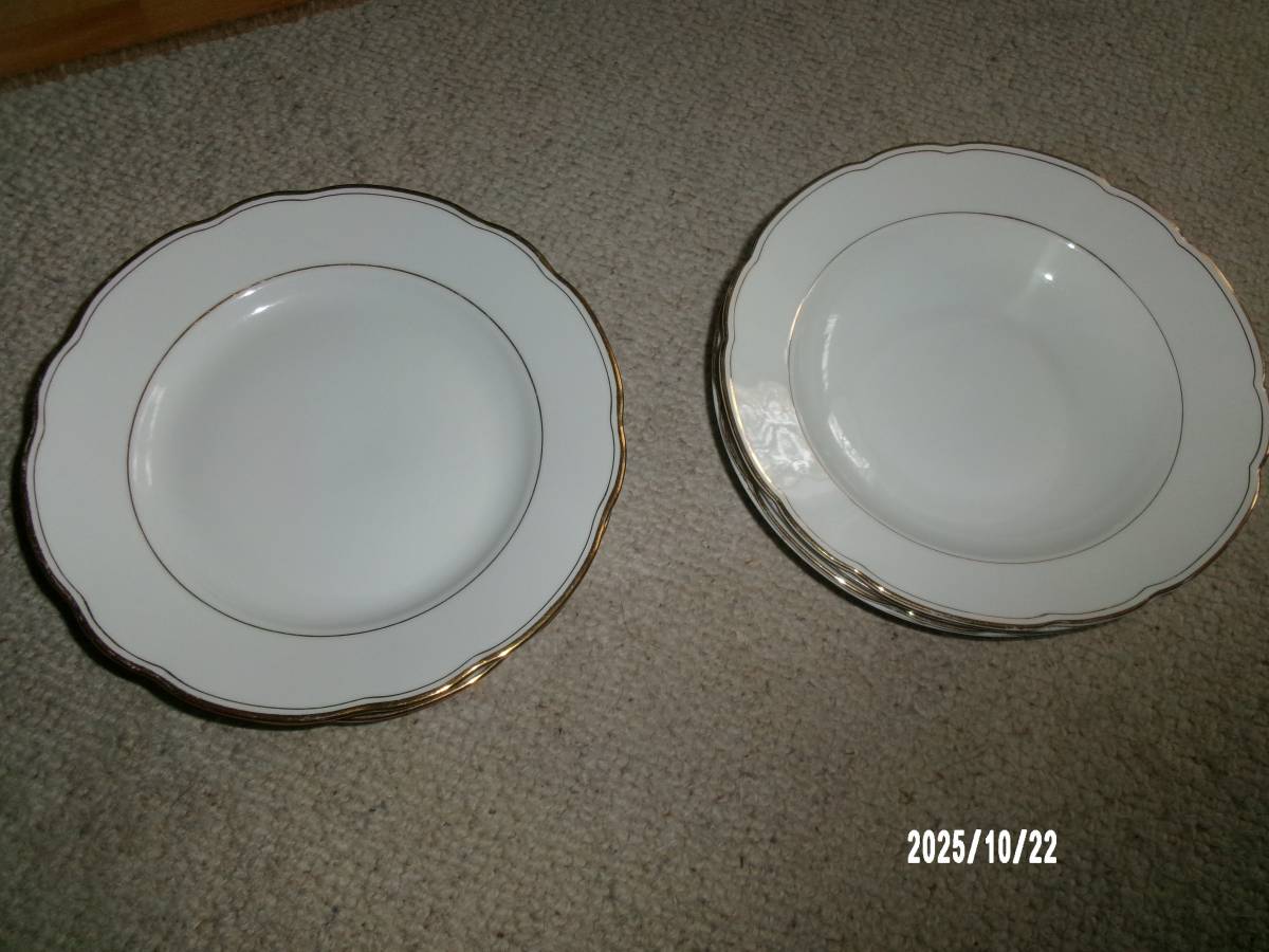 Nabízím retro porcelánové talíře se zlatým okrajem - souprava 6 mělkých a 6 hlubokých, made in Czechoslovakia. Lze samozřejmě vzít jen mělké nebo jen hluboké... Praha 4 - sídliště Krč. Napište prosím rovnou, kdy byste si je mohli vyzvednout.