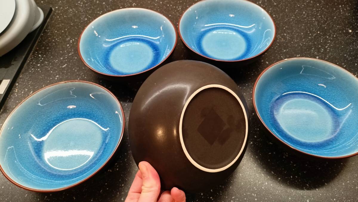 7 hlubokých talířů /misek na polívku (5 modrých + 2 tyrkysové),