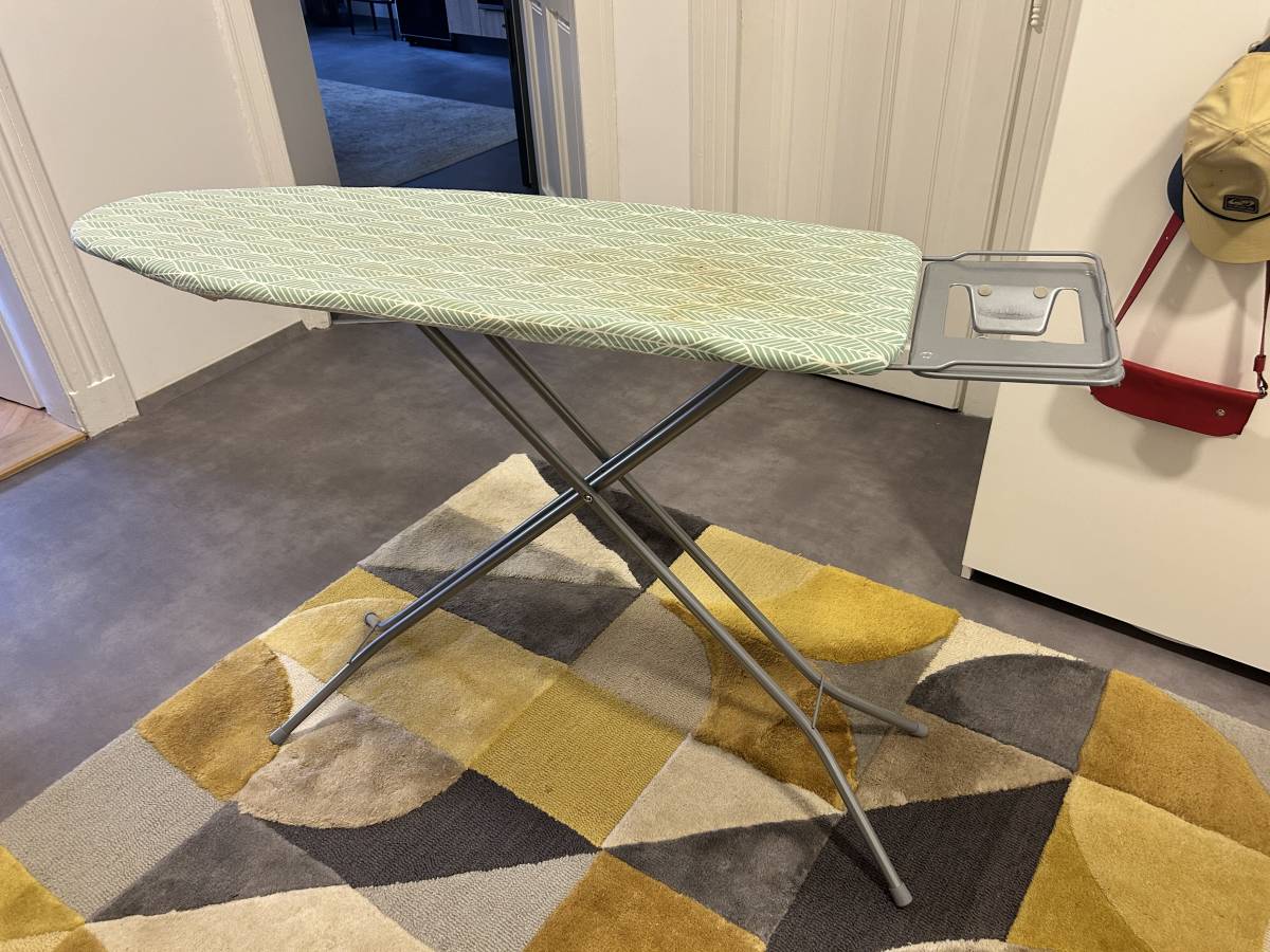 Klasické žehlicí prkno. Je třeba vyměnit potah, ten je používáním zašlý (viz foto) Jinak je v pořádku.