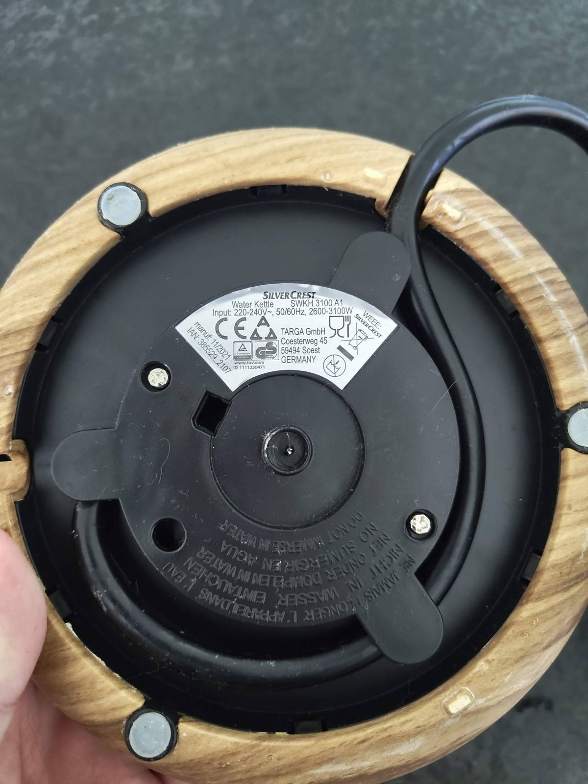Varná konvice značky SilverCrest, model SWKH 3100 A1 (černé provedení).