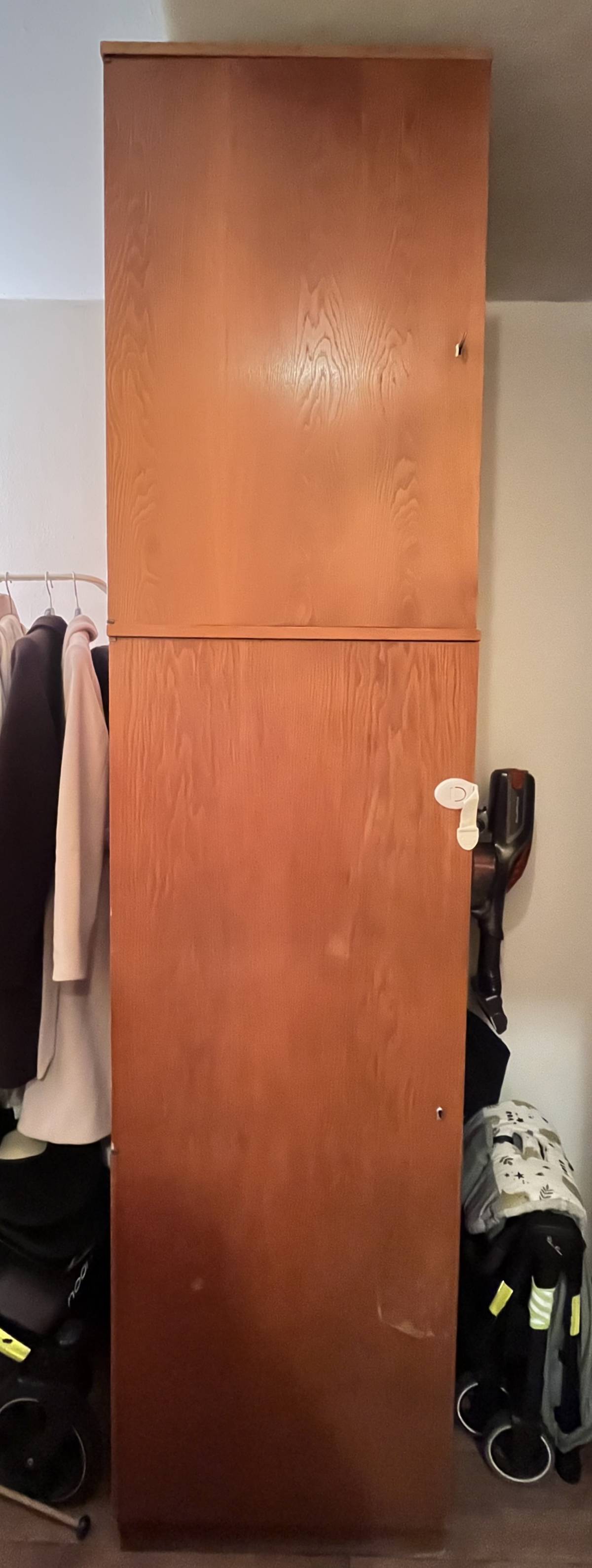 Daruji za odvoz skříň s policemi. Hloubka 58,5; šířka 59; výška spodní části 163; výška horní části 87 cm.