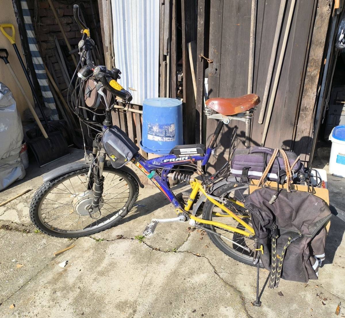 Staré elektrokolo s brašnami