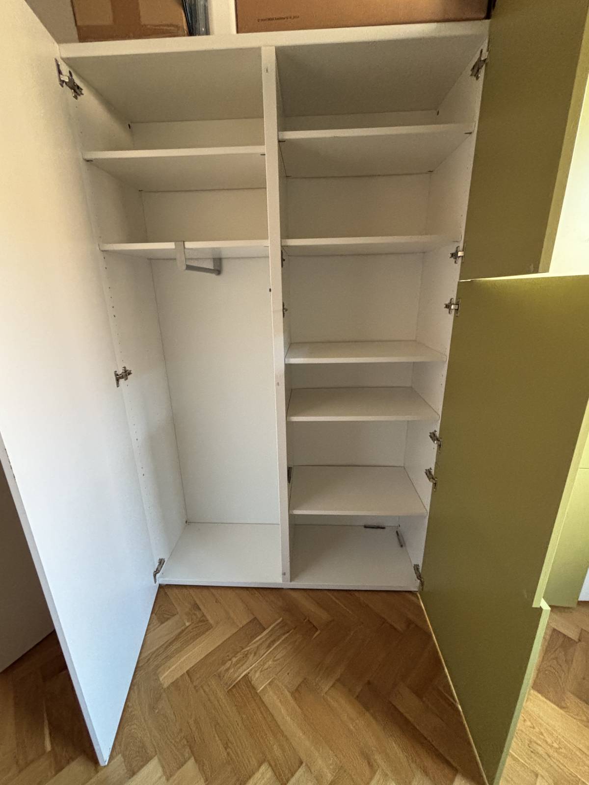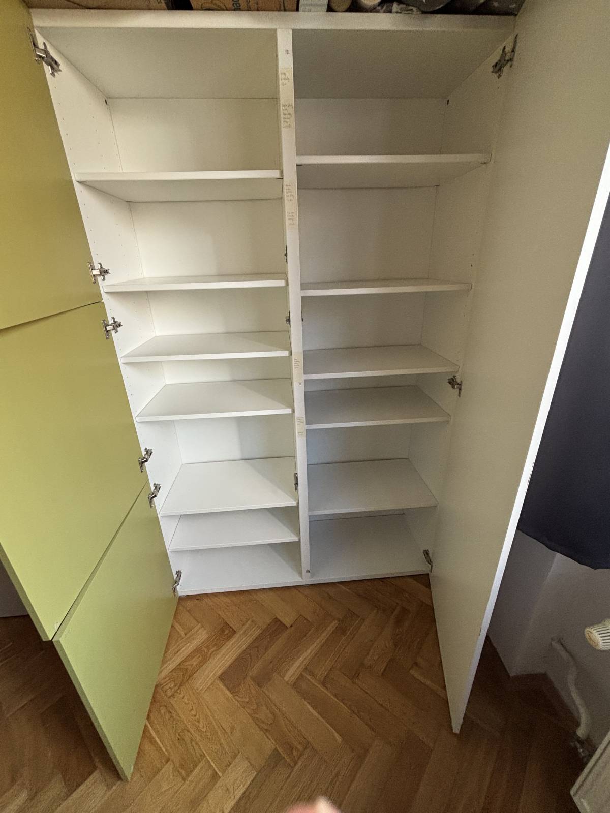 Daruji za odvoz dlouhou úzkou skříň: šířka cca 250 cm, hloubka cca 40 cm, výška cca 200 cm. Zavírání tip-on není všude funkční, dvířka jsme měli pootevřená.