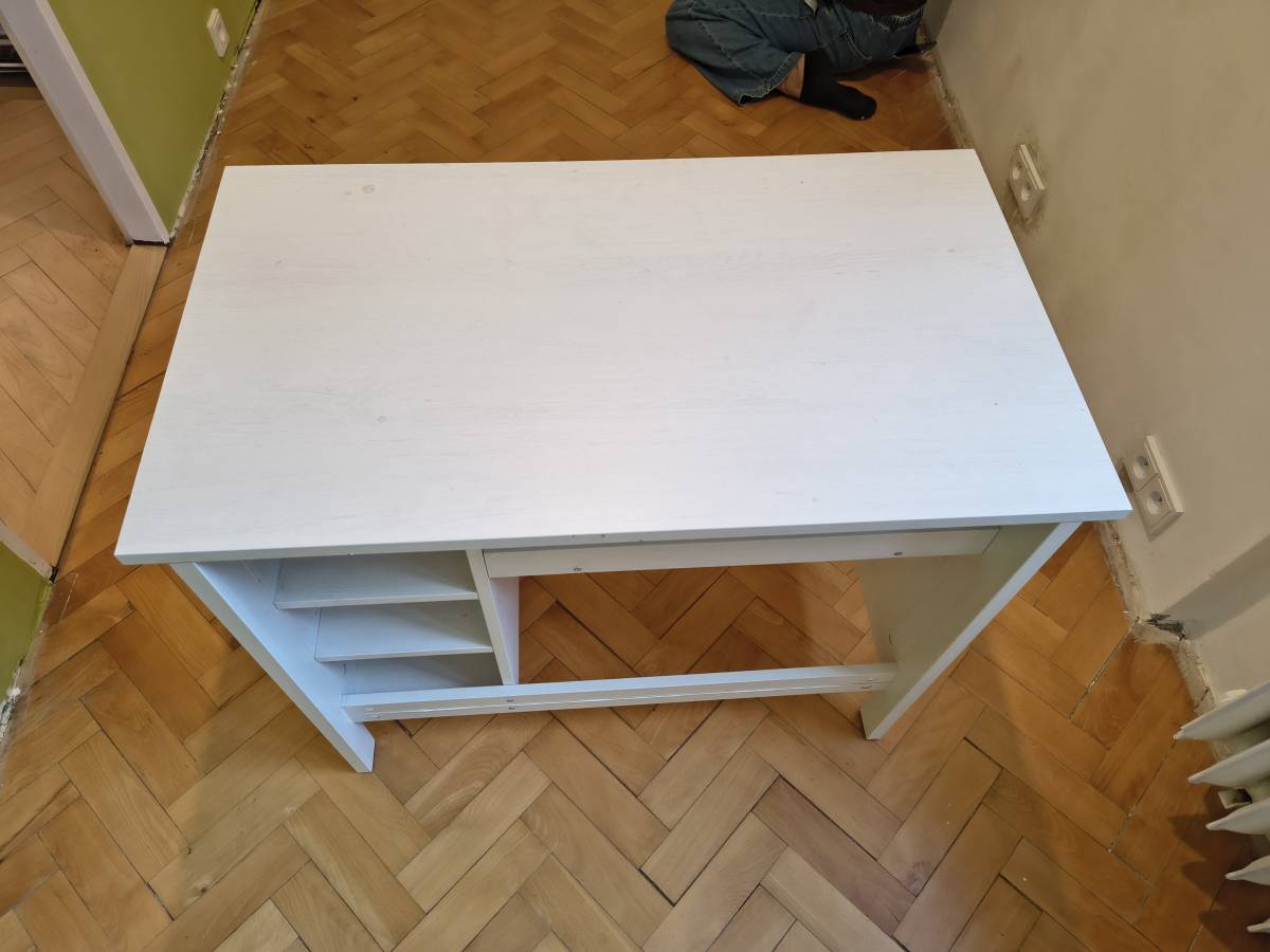 Daruji za odvoz bíle lakovaný psací stůl menší do dětského pokoje z masivu. Ve velmi dobrém stavu.