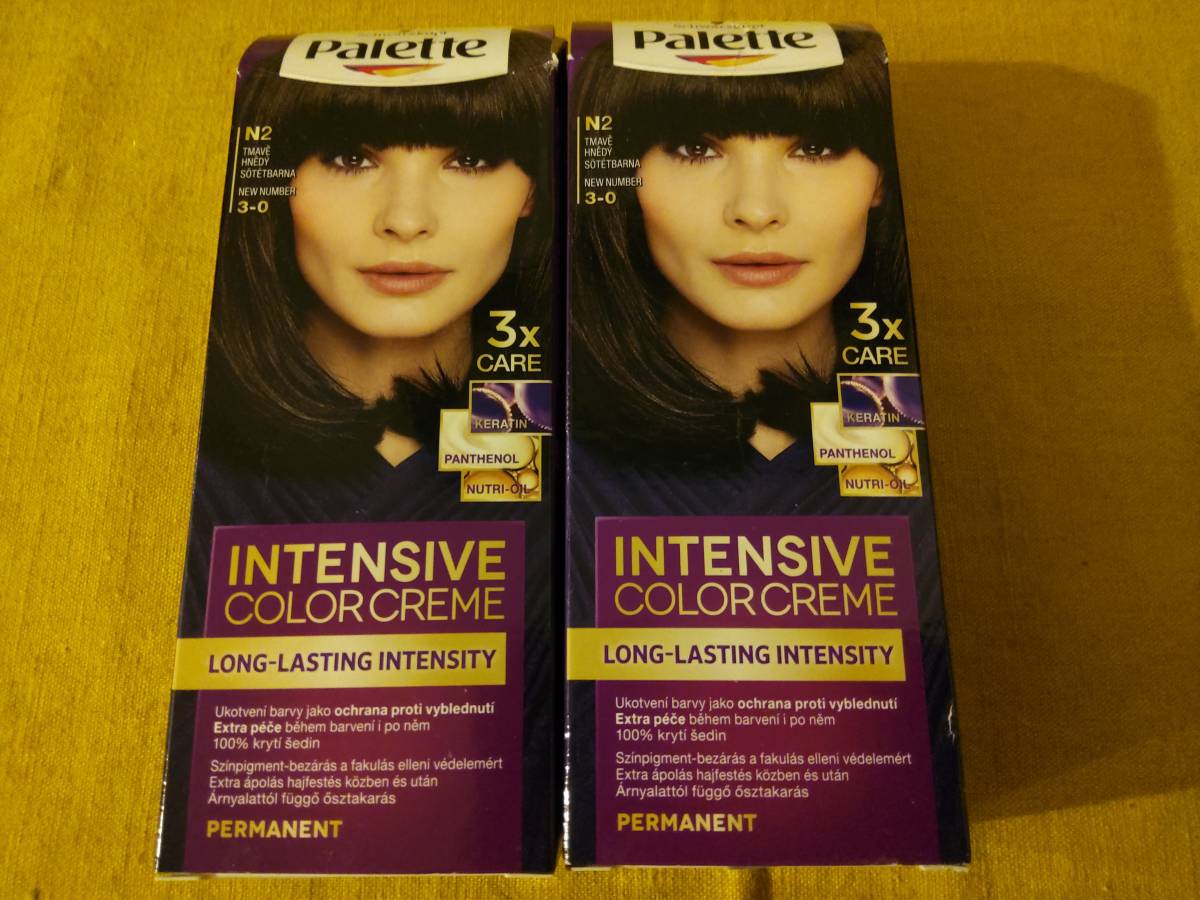 Daruji za odvoz barvy na vlasy Palette intensive color creme N2 tmavě hnèdý. Jedno baleni neotevřené, druhé je z poloviny vypotřebované. Barvy jsem měla doma delší dobu.