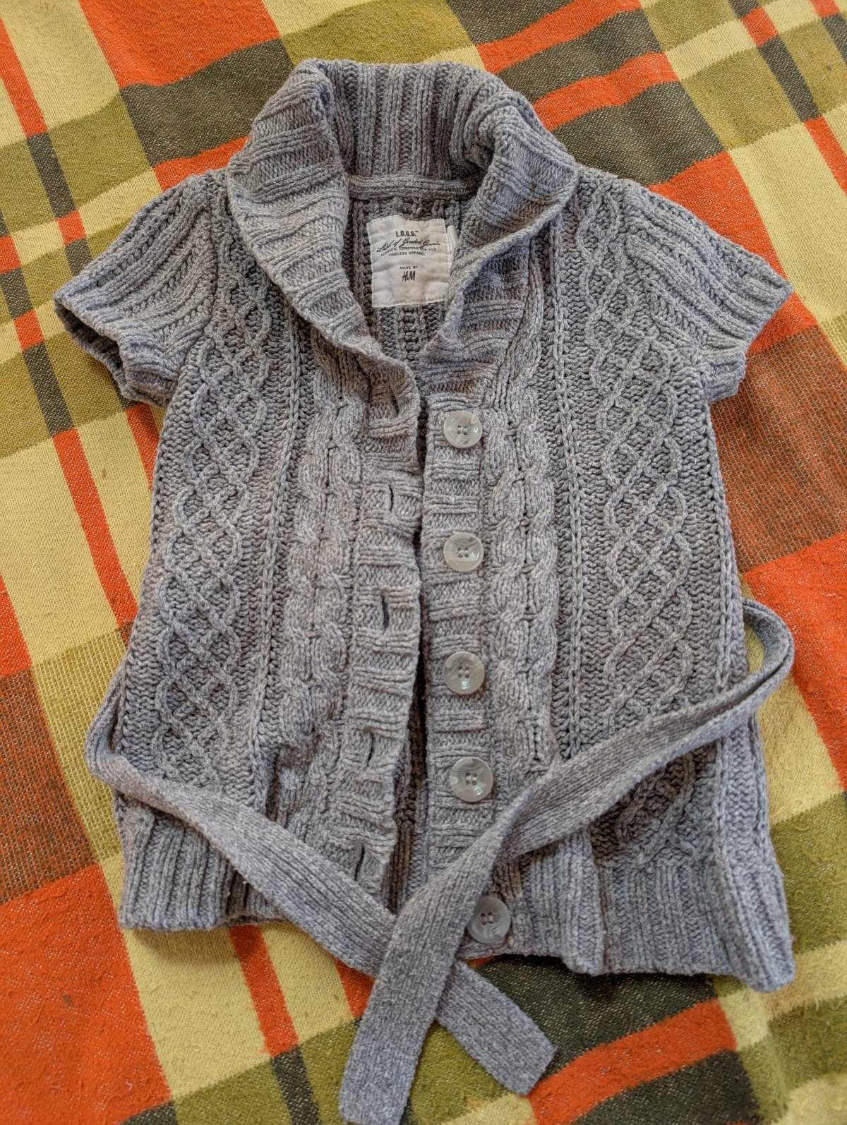 Daruji za odvoz dívčí pletenou vestu L.O.G.G. s krátkým rukávem a límcem. Zapínání na knoflíky, pásek na zavázání. Délka 43 cm.