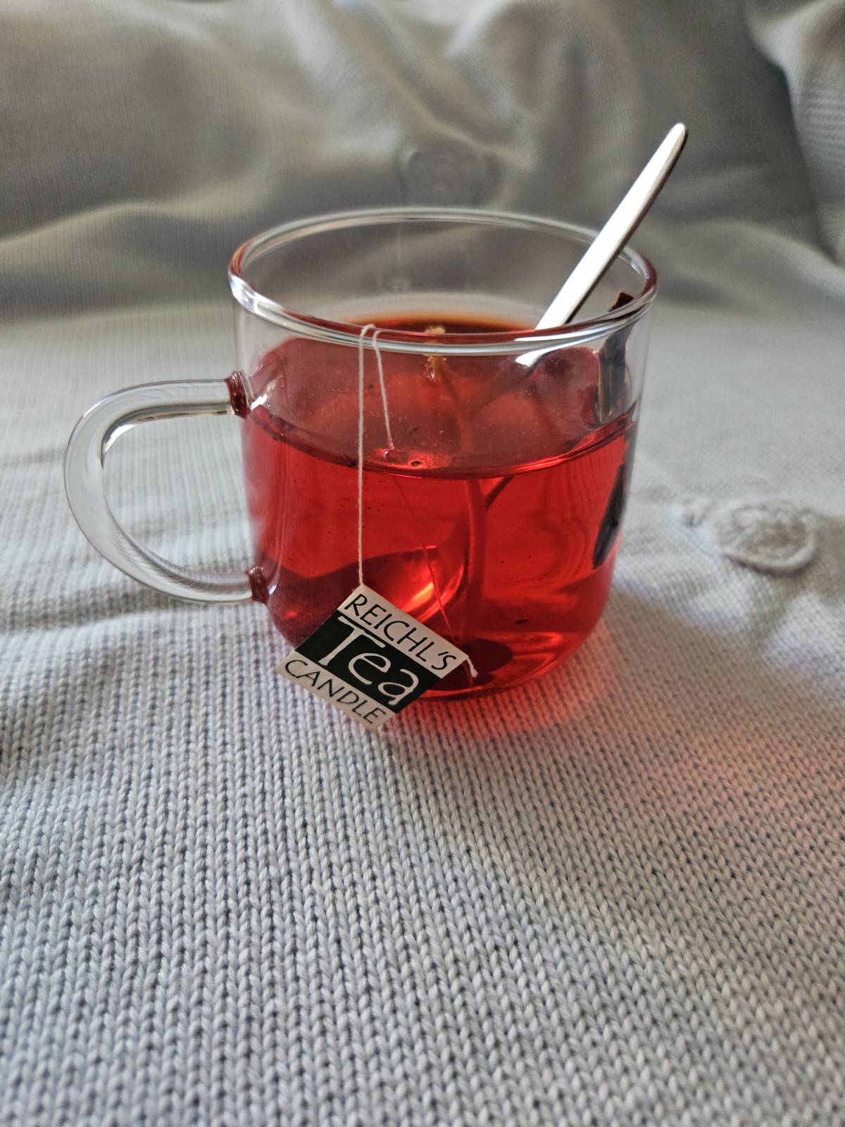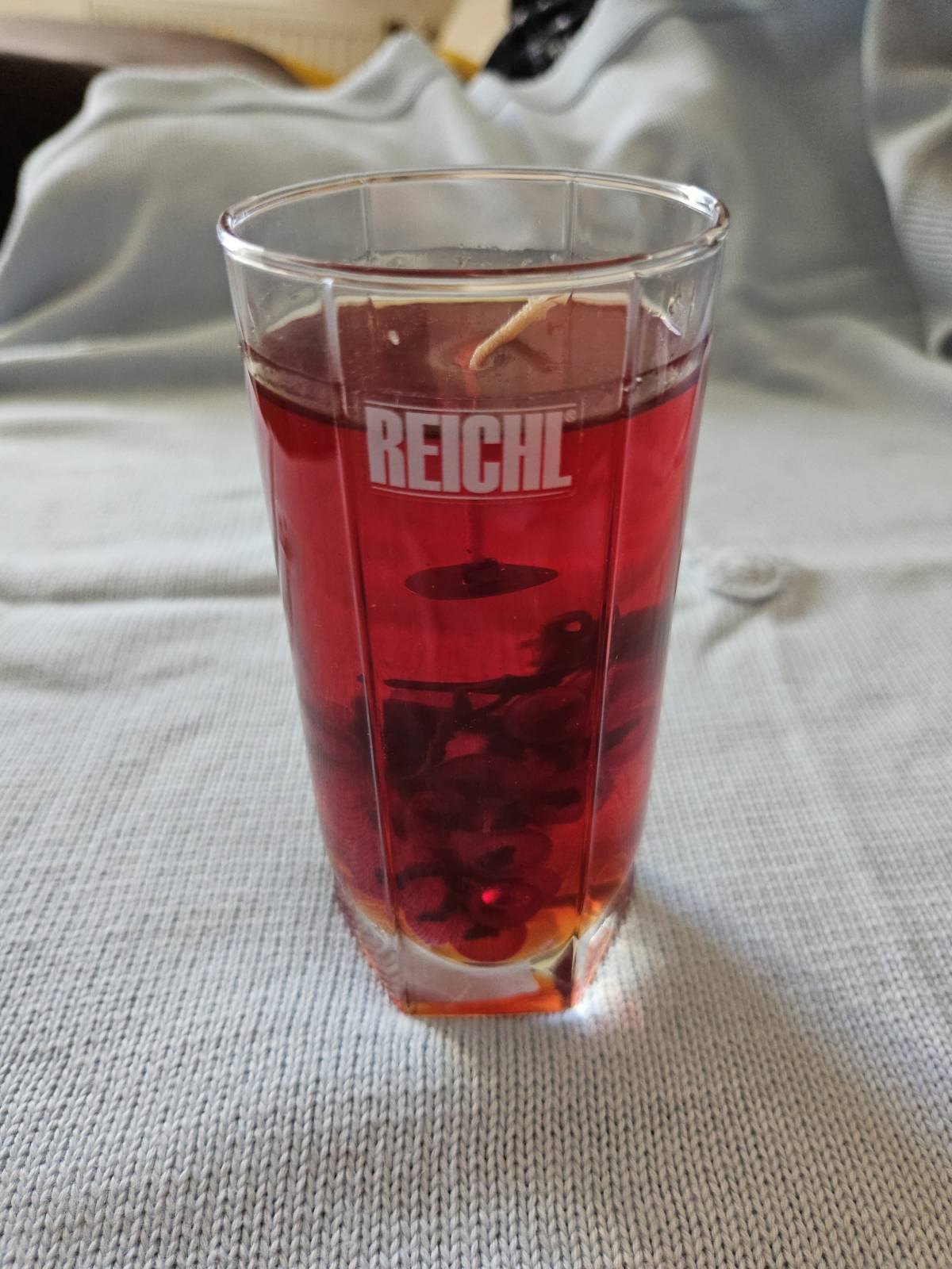 Daruji za odvoz svíčku, která vypadá jako hrníček s ovocným čajem, k tomu přidám ještě druhou svíčku ve skleničce.